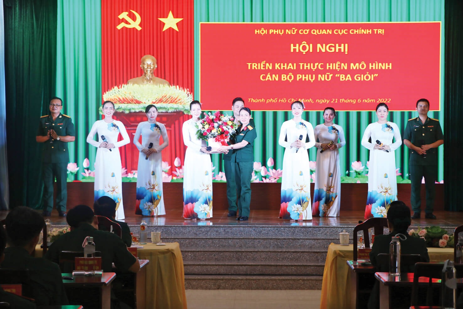 Trong buổi sinh hoạt Hội tại cơ quan Cục Chính trị Quân khu 7, không khí sôi nổi khi các cán bộ, hội viên bàn thảo kế hoạch triển khai chương trình “Mẹ đỡ đầu”, hỗ trợ 3 trẻ mồ côi do dịch Covid-19, mỗi cháu được nhận 36 triệu đồng/năm đến khi đủ 18 tuổi. Hình ảnh này minh chứng rõ nét cho sức bật từ mô hình “Cán bộ phụ nữ Ba giỏi” (giỏi tham mưu đề xuất, giỏi vận động tập hợp, giỏi tổ chức thực hiện) đã góp phần tạo nên bước chuyển mạnh mẽ cho phong trào phụ nữ cơ quan giai đoạn 2020-2025.