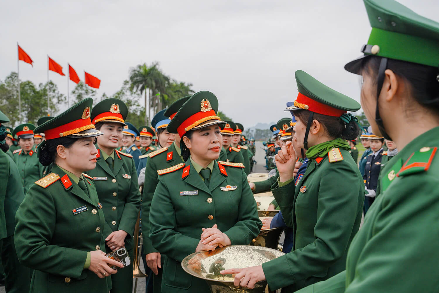 Chiều cùng ngày, tại Tiểu đoàn 4 (Lữ đoàn 134, Binh chủng Thông tin liên lạc), Ban Phụ nữ Quân đội cũng đã thăm, chúc mừng 128 nữ quân nhân Khối nữ sĩ quan Thông tin đang tích cực luyện tập với tinh thần quyết tâm cao sẵn sàng hợp luyện cùng đội hình chung.