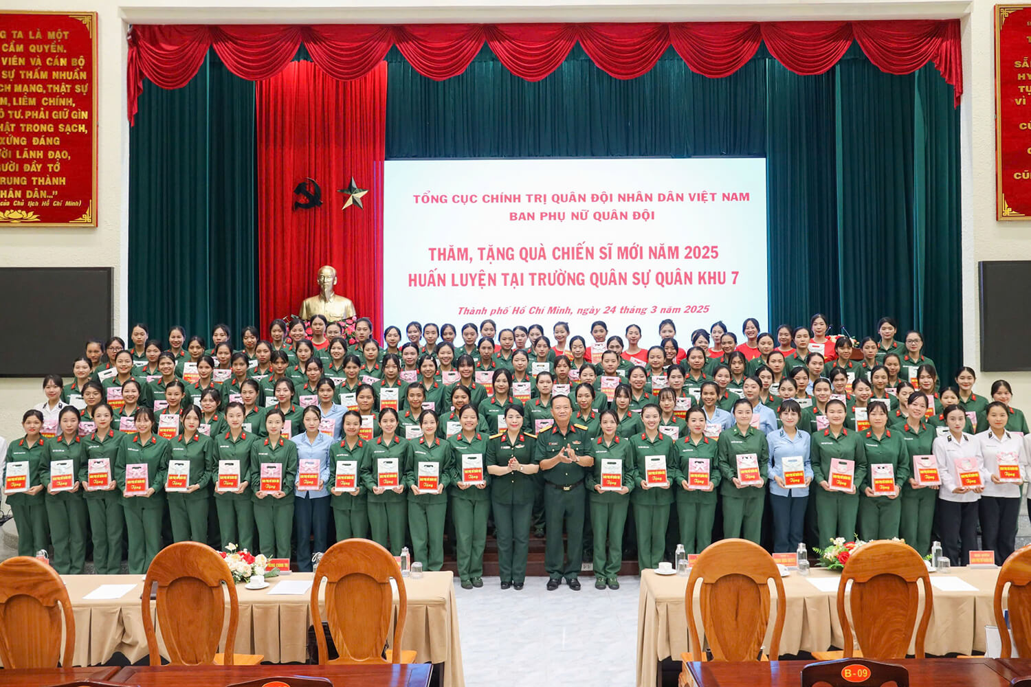 Ngày 24-3-2025, Ban Phụ nữ Quân đội (PNQĐ) phối hợp với Cục Chính trị Quân khu 7 đến thăm, động viên nữ chiến sĩ mới nhập ngũ năm 2025 tại Trường Quân sự Quân khu 7.