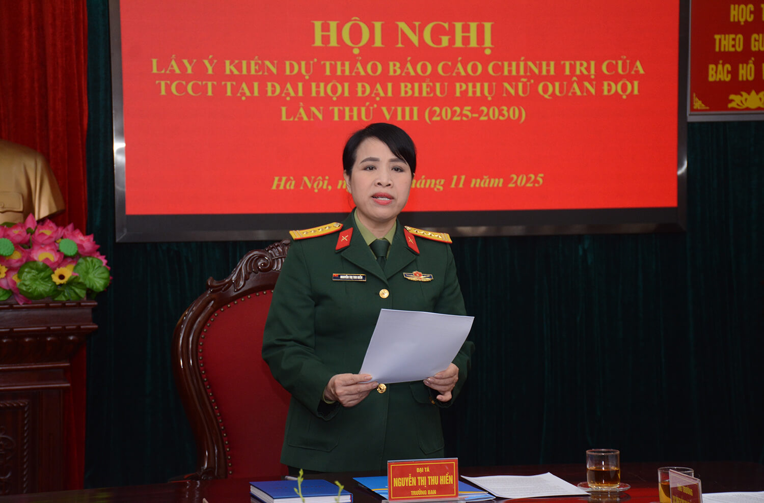 Phát biểu kết luận hội nghị, Đại tá Nguyễn Thị Thu Hiền trân trọng cảm ơn sự quan tâm, nhiệt tình, tâm huyết, trách nhiệm của các đại biểu; nhấn mạnh dự thảo các văn kiện tại Đại hội đại biểu Phụ nữ Quân đội lần thứ VIII là sự kết tinh trí tuệ, thể hiện tầm nhìn chiến lược, định hướng quan trọng đối với công tác phụ nữ và phong trào phụ nữ toàn quân trong giai đoạn mới.