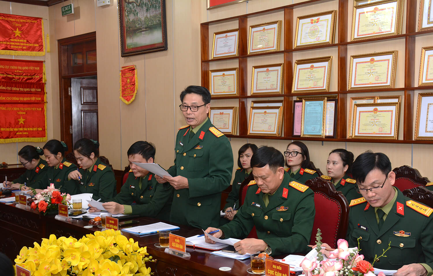 Đại biểu Cục Tuyên huấn (Tổng cục Chính trị) phát biểu đóng góp nhiều ý kiến tâm huyết tại hội nghị
