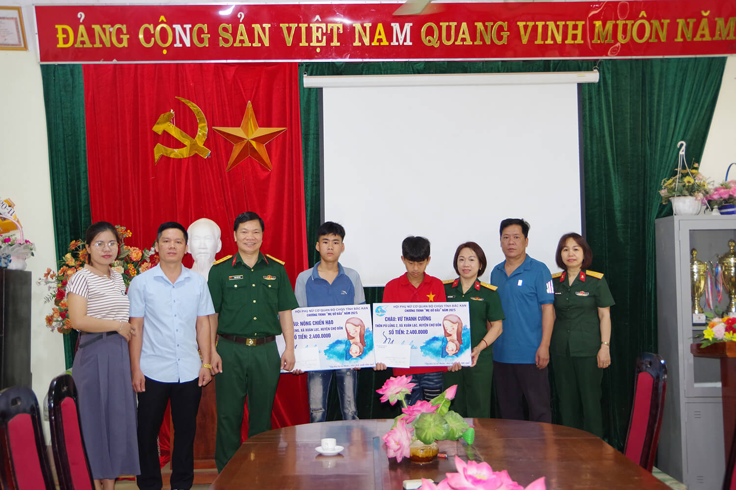 Hai trường hợp được Hội phụ nữ hỗ trợ lần này là cháu Vừ Thanh Cường, sinh năm 2012, học sinh lớp 7 và cháu Nông Chiến Hạo, sinh năm 2010, học sinh lớp 9, Trường trung học phổ thông (THPT) bán trú xã Xuân Lạc. Số tiền mỗi cháu được nhận là 2.400.000 đồng một năm, trích từ quỹ “Ống tiền tiết kiệm” của cán bộ, hội viên Hội phụ nữ cơ quan Bộ CHQS tỉnh. Trong chuyến công này, Hội phụ nữ cũng trao 5 suất quà cho các cháu học sinh nghèo vượt khó tại Trường THPT bán trú của xã, mỗi suất 500.000đ.