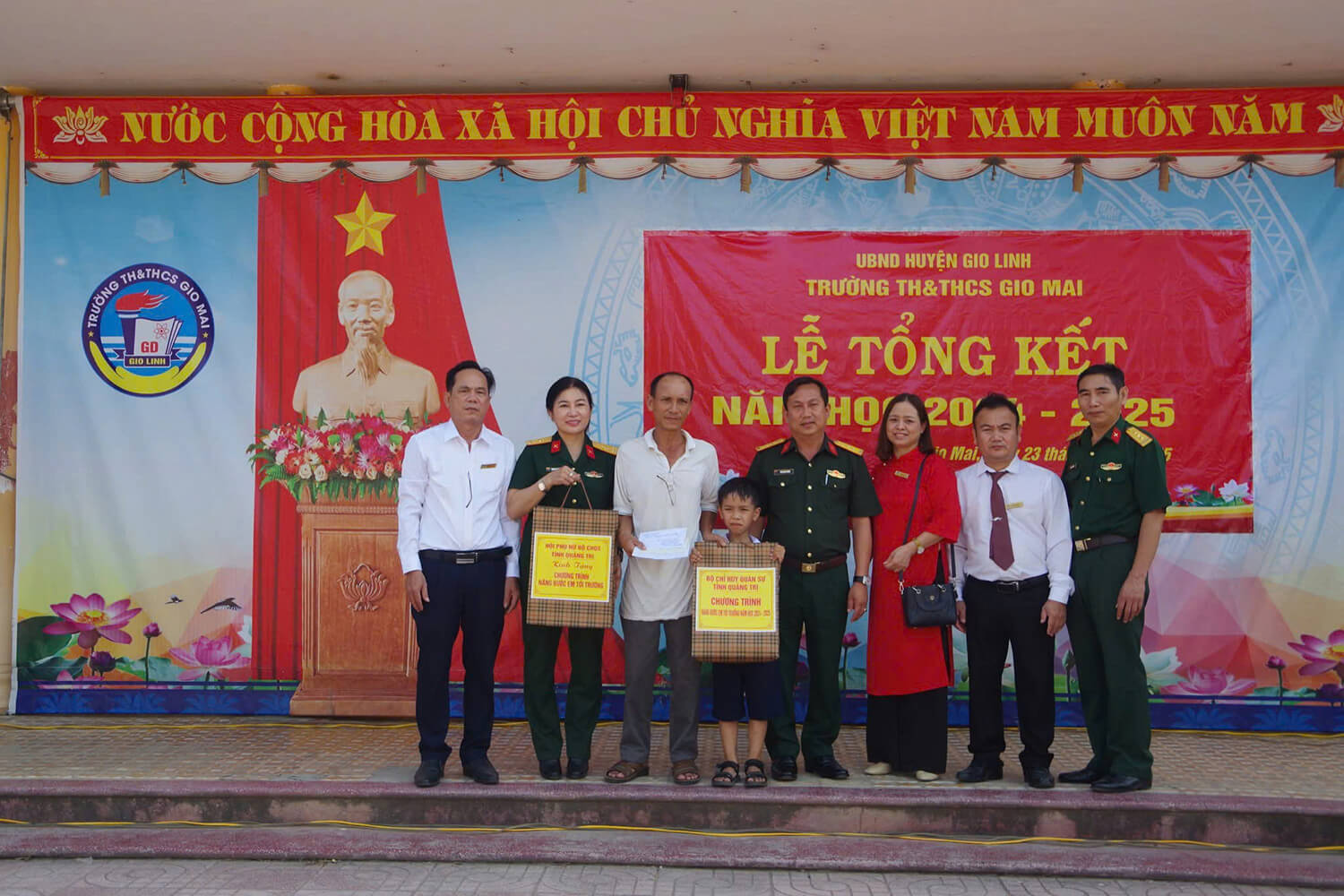 Sáng 23-5-2025, đoàn công tác Bộ Chỉ huy Quân sự (CHQS) tỉnh Quảng Trị do Thượng tá Trần Hữu Cường - Phó Chủ nhiệm Chính trị làm trưởng đoàn đã đến Trường tiểu học và trung học cơ sở Gio Mai, Gio Linh, tặng quà cho học sinh vượt khó, học giỏi.