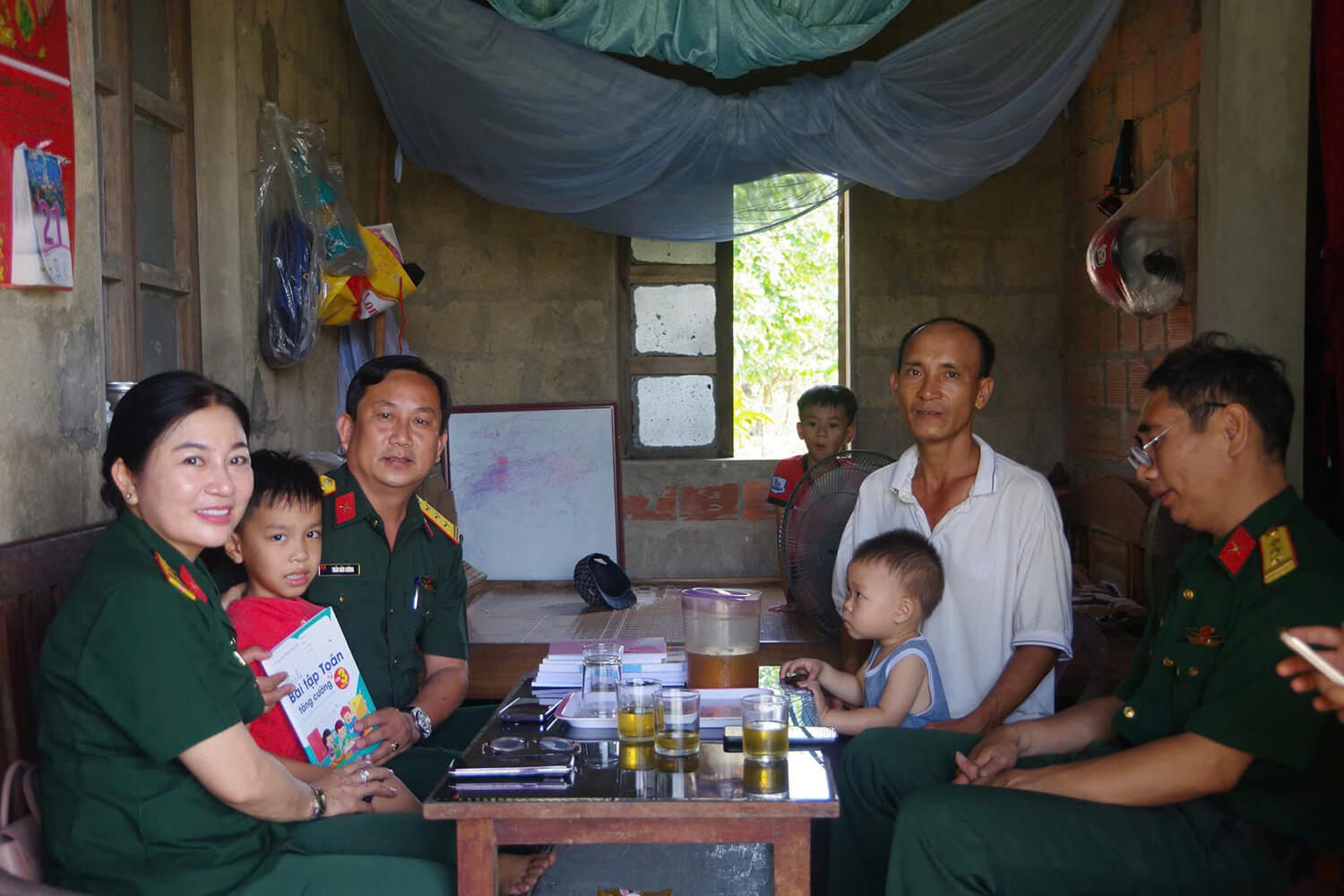 Đây là chương trình “Cán bộ, chiến sĩ Quân đội nâng bước em tới trường”. Tại lễ tổng kết năm học 2024 - 2025 của nhà trường, thừa ủy quyền Bộ CHQS tỉnh, đoàn trao tặng đồ dùng học tập và hỗ trợ tiền ăn, học bổng cho cháu Trần Nguyên Khôi, học sinh lớp 2B, hoàn cảnh đặc biệt khó khăn, đạt thành tích xuất sắc trong năm học vừa qua, trị giá gần 8.000.000đ. Hội phụ nữ Bộ CHQS tỉnh cũng trao cho cháu Nguyên Khôi phần quà 1.000.000đ. Đoàn cũng động viên, mong gia đình tạo điều kiện để cháu tiếp tục học tập, rèn luyện, trở thành con ngoan, trò giỏi.