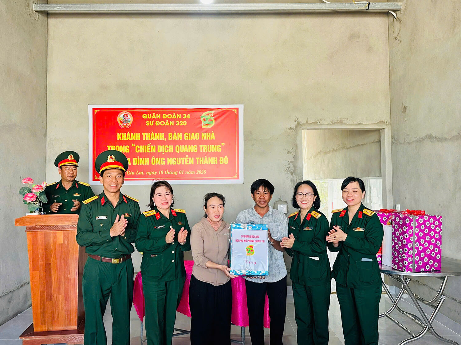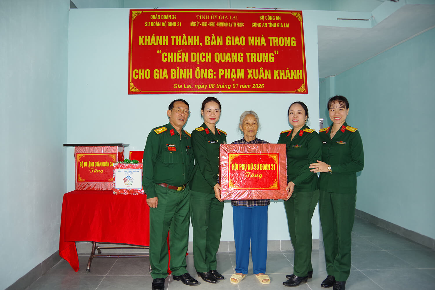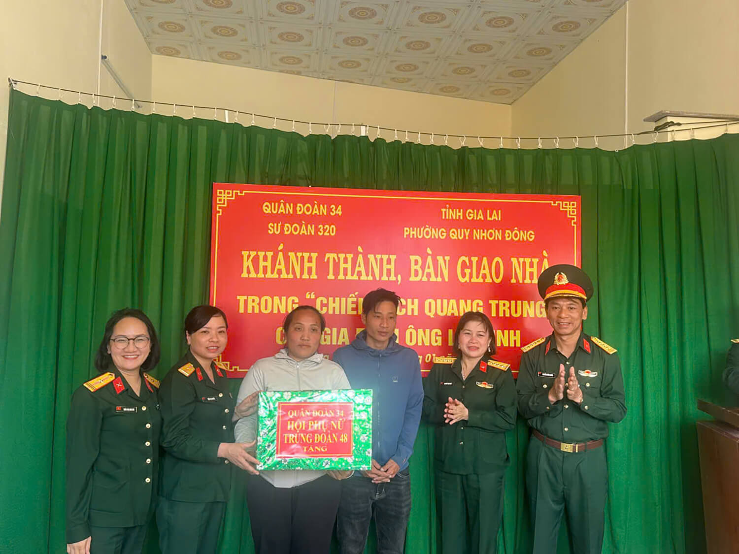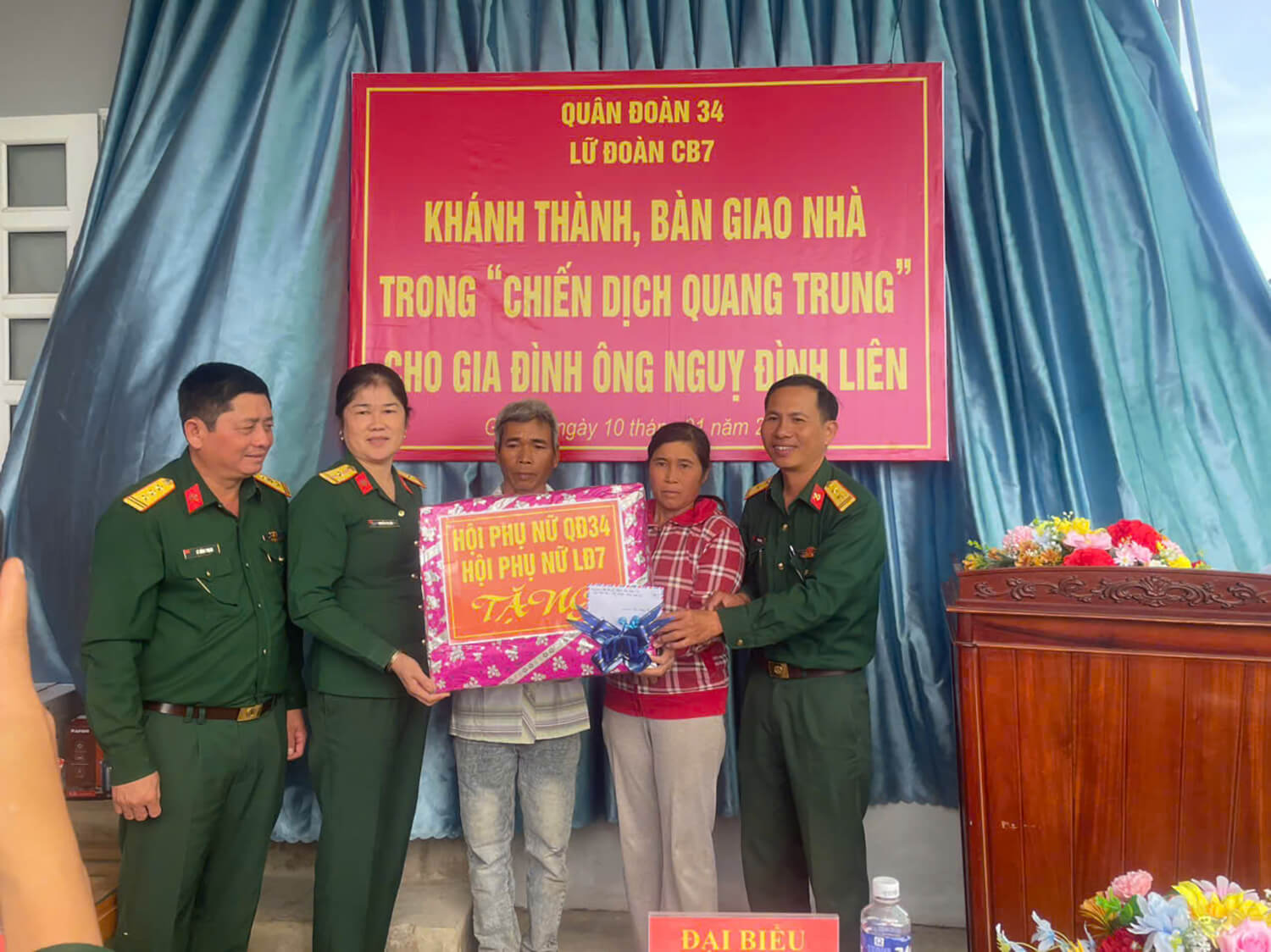 Cùng với việc hỗ trợ phương tiện, lực lượng thi công, Bộ Tư lệnh Quân đoàn 34 đã trao tặng mỗi hộ gia đình một phần quà trị giá 1 triệu đồng; các đơn vị trực tiếp thực hiện nhiệm vụ cũng trao thêm mỗi gia đình một phần quà trị giá 1 triệu đồng. Riêng bà Tô Thị Sửa, trú tại thôn Chánh Hội, xã Ngô Mây (tỉnh Gia Lai), là người có công với cách mạng, được Bộ Tư lệnh Quân đoàn hỗ trợ thêm 20 triệu đồng.