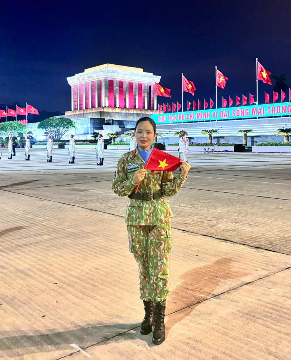 Trung úy QNCN Trần Thị Thu Phương trước Lăng Chủ tịch Hồ Chí Minh