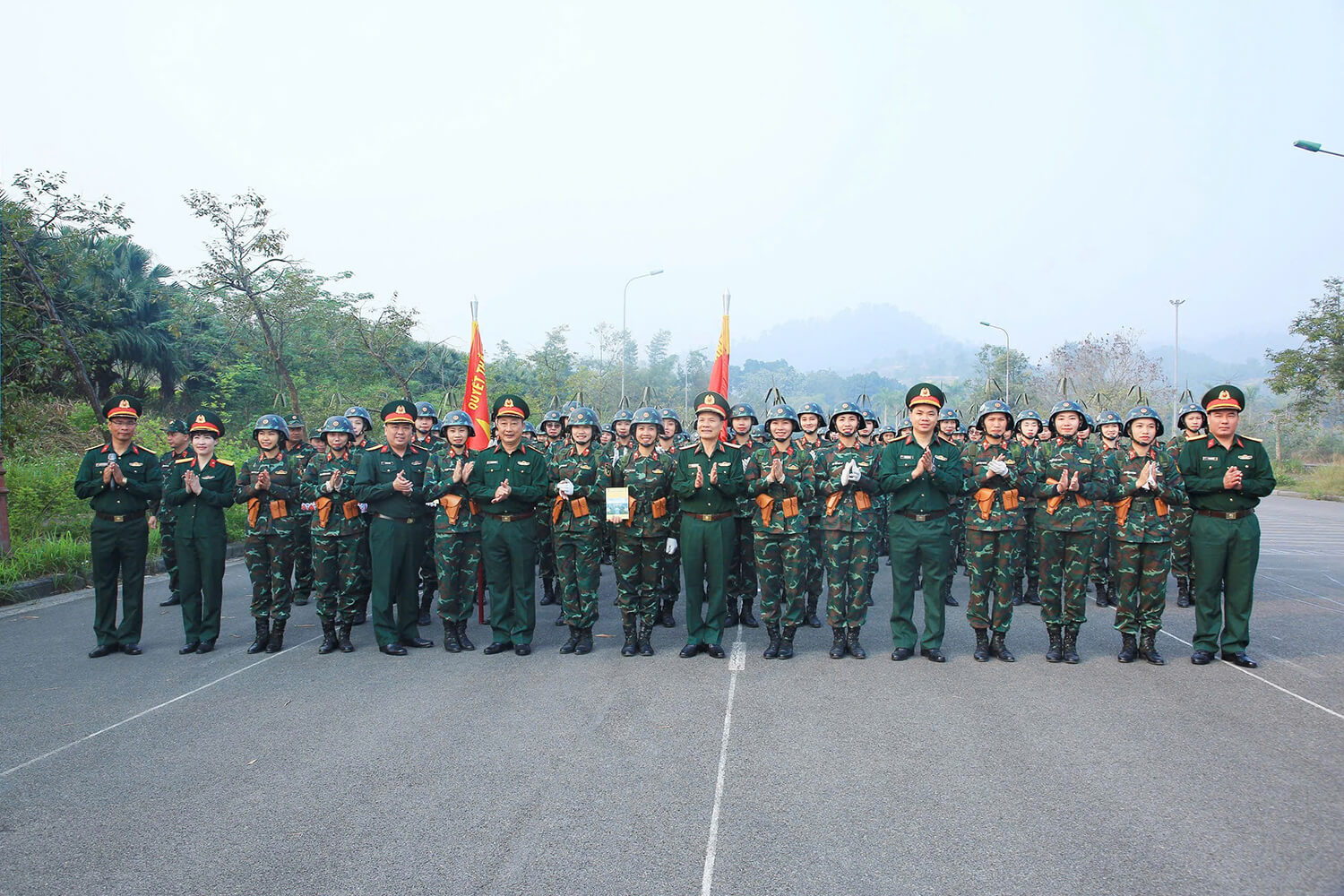 Thiếu tướng Trương Quang Hoài - Phó Hiệu trưởng và đoàn công tác Trường SQLQ1 thăm khối nữ luyện tập diễu binh, diễu hành