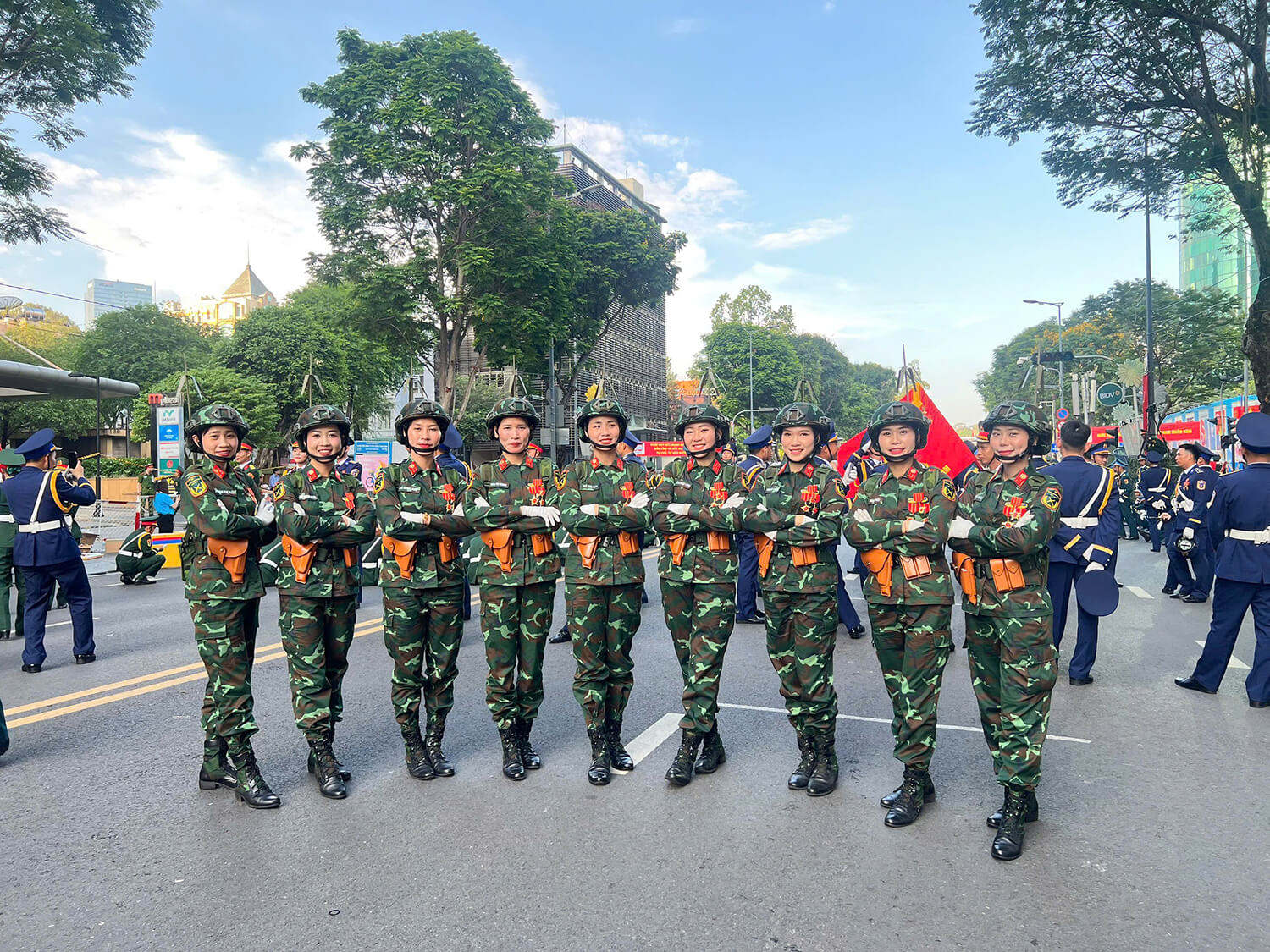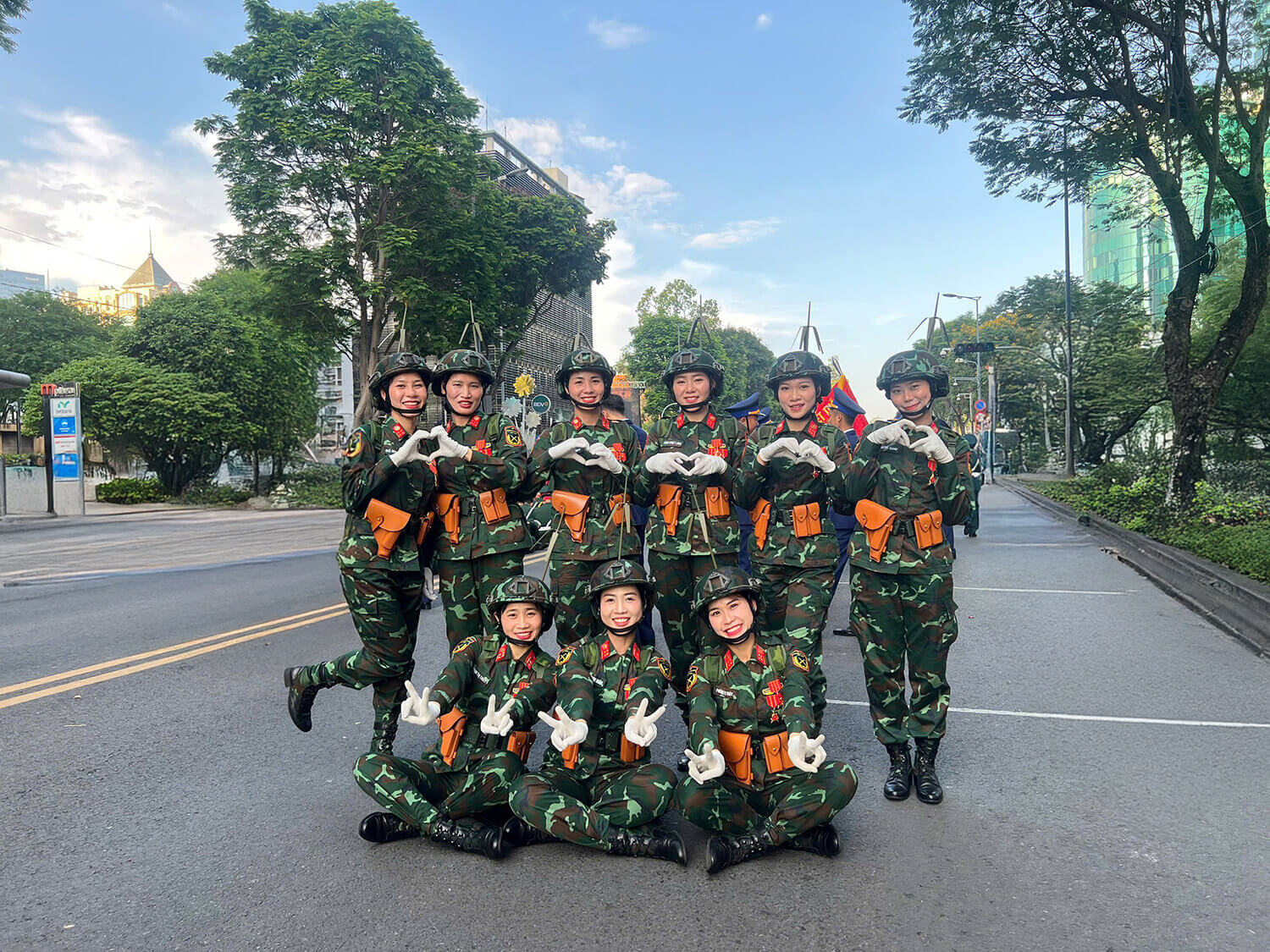 Thiếu úy QNCN Trần Hồ Phương Thảo, nhân viên bảo mật, sinh trưởng trong gia đình quân nhân, bày tỏ: Trong đội hình hành tiến em thấy hình bóng của những người lính năm xưa tiến vào Dinh Độc Lập, cắm cờ chiến thắng 50 năm trước. Đã có lúc tưởng chừng em phải bỏ cuộc vì chấn thương trong quá trình luyện tập, nhưng nghĩ đến vinh dự lớn lao này, em lại càng thêm quyết tâm. Diễu binh, diễu hành không chỉ là một nhiệm vụ, mà còn là phần ký ức thiêng liêng của dân tộc mà em may mắn được góp mặt.
