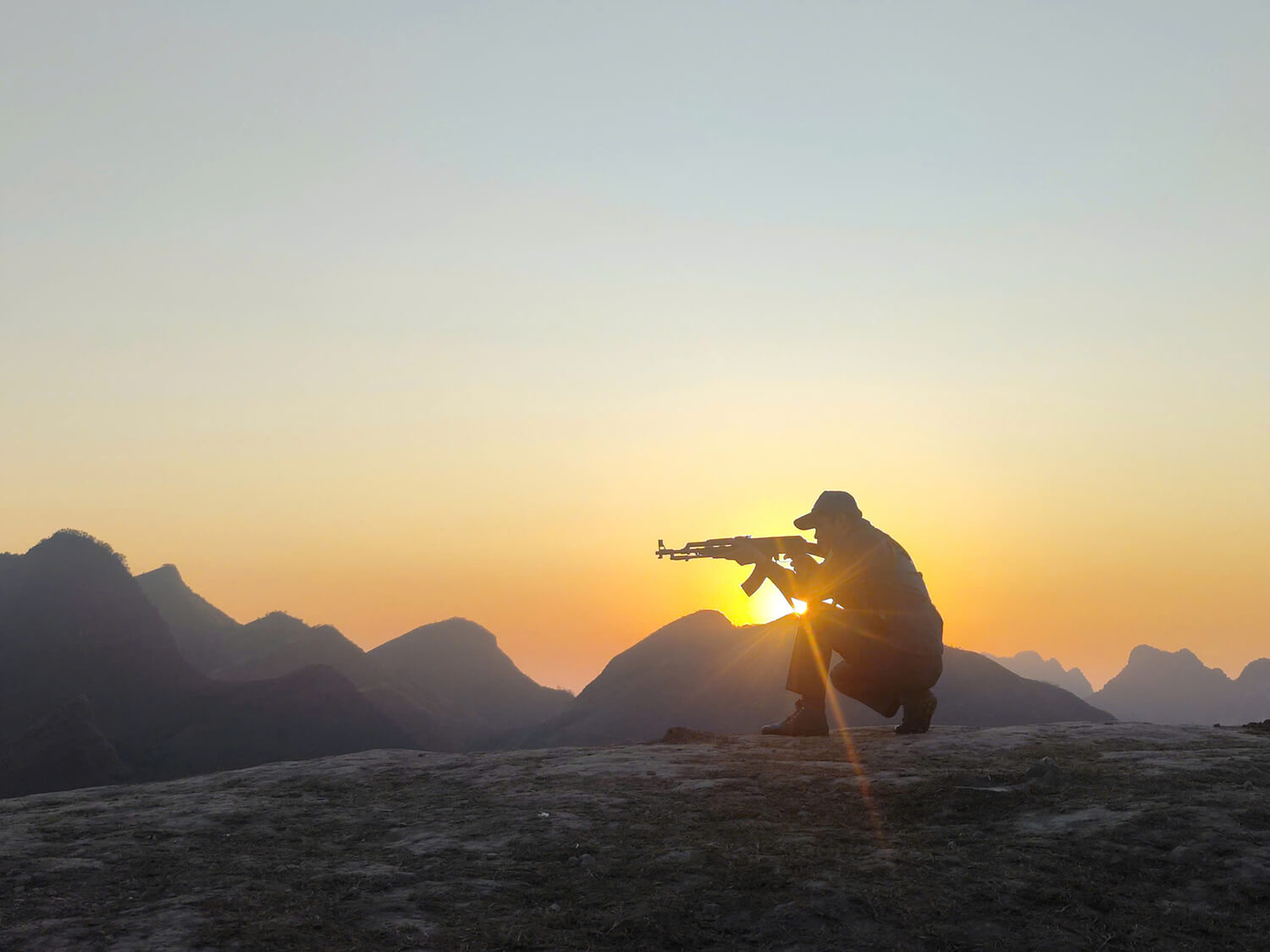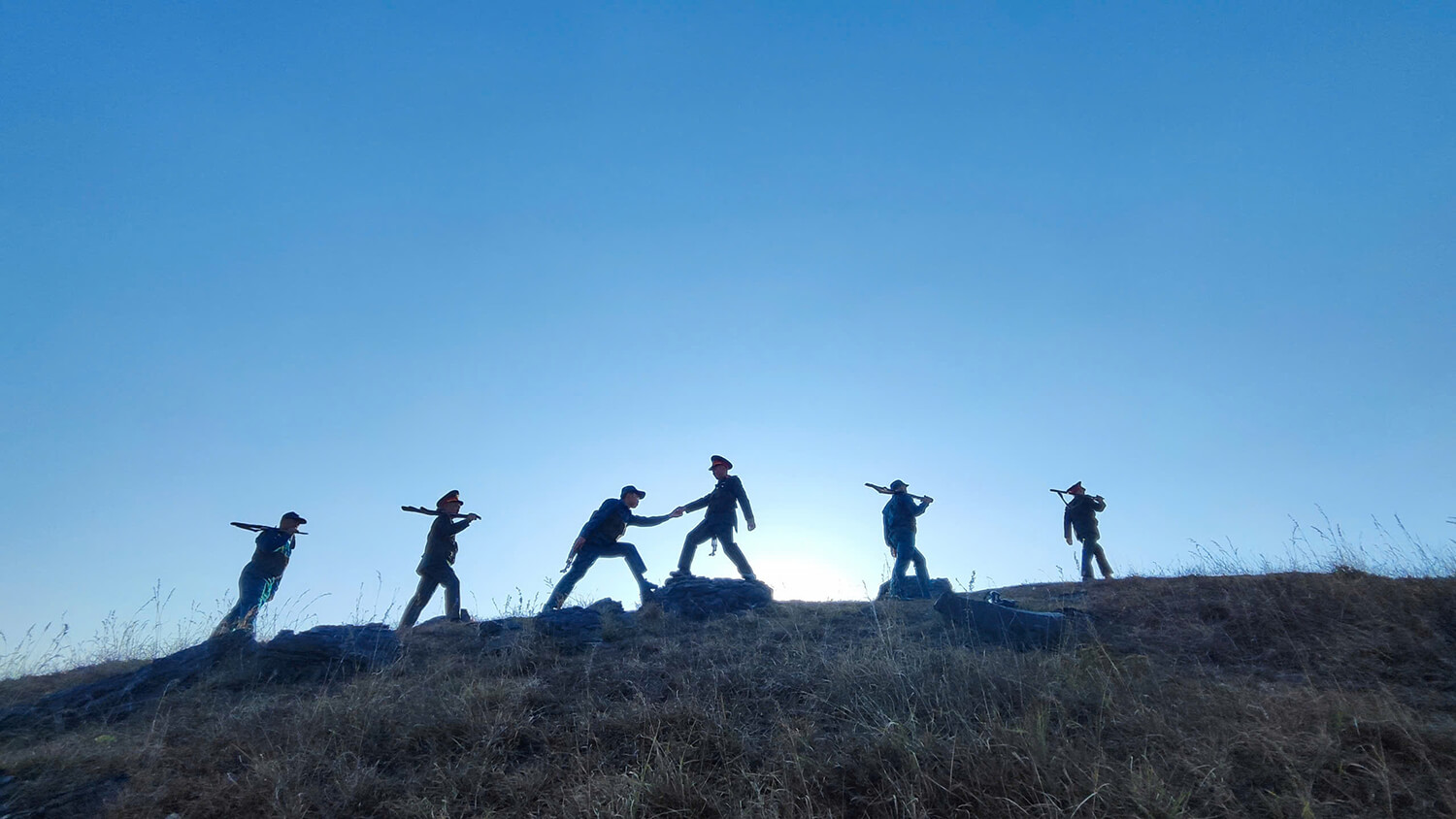 Mỗi sớm mai, khi tiếng gà kéo bình minh thức dậy, đồng đội cùng nhau lên đường. Những tia nắng đầu tiên chiếu rọi xuống những tán cây cổ thụ, tạo nên một khung cảnh huyền ảo. Vượt qua những lối mòn, lội suối, băng rừng, leo dốc, những người lính luôn chắc tay súng, vững vàng trước mọi thử thách.