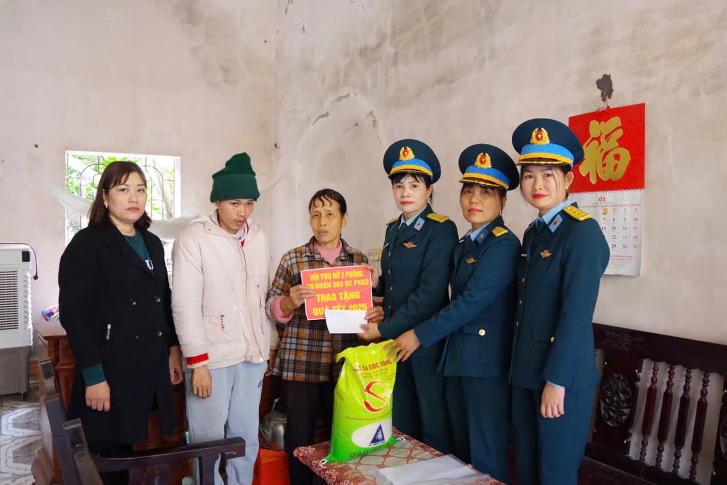 Đại diện Hội phụ nữ các phòng Chính trị và Hậu cần - Kỹ thuật Sư đoàn 363, Quân chủng Phòng không - Không quân (PK-KQ) vừa đến thăm và tặng quà một số gia đình chính sách, gia đình đặc biệt khó khăn trên địa bàn quận Kiến An, thành phố Hải Phòng trong dịp Tết Nguyên đán Ất Tỵ 2025.