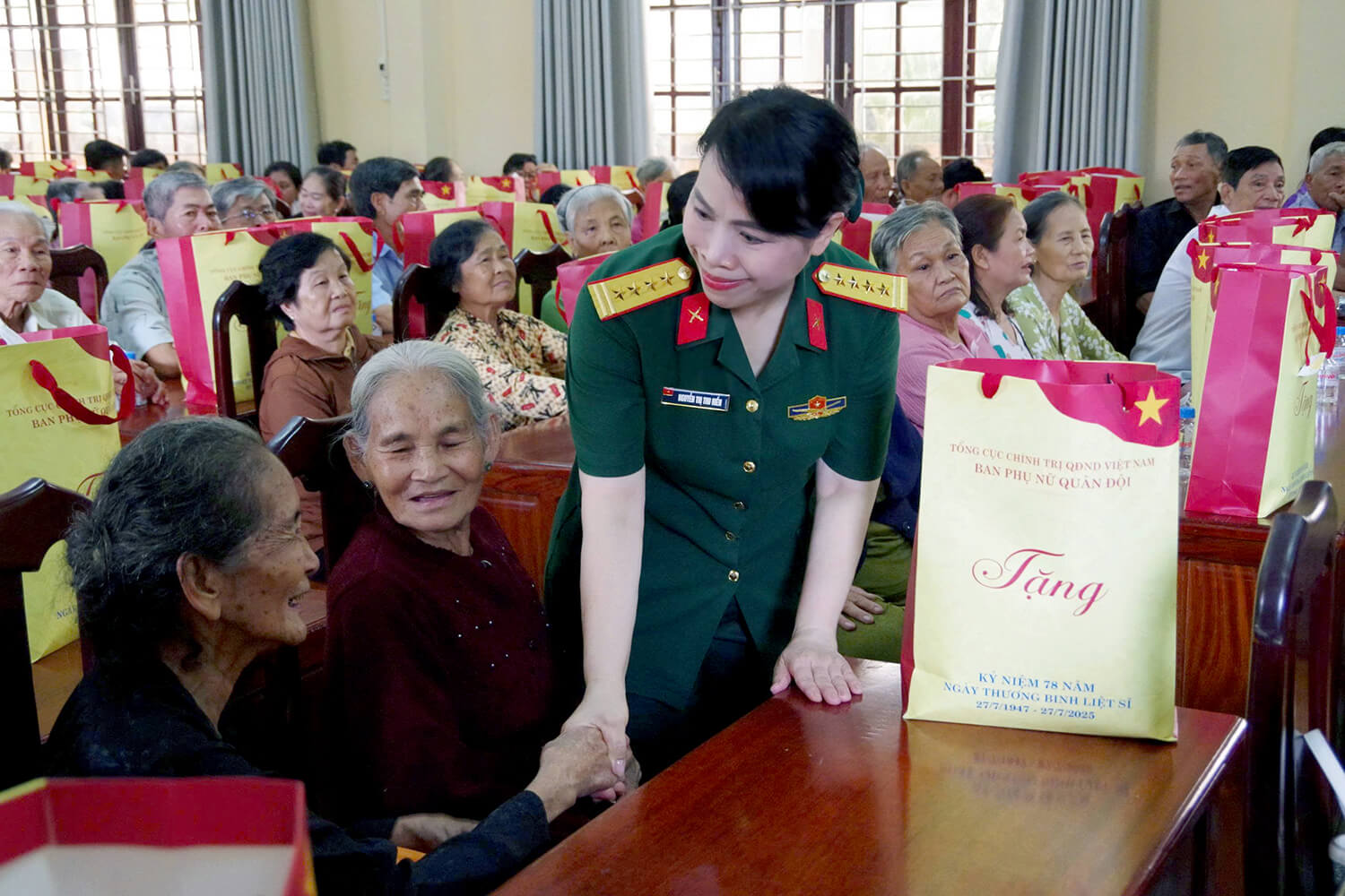Không chỉ dừng lại ở những chuyến đi tri ân ngắn ngày, phụ nữ Quân đội thời gian qua đã thường xuyên tổ chức nhiều hoạt động thiết thực, giàu tính nhân văn: xây tặng nhà tình nghĩa, hỗ trợ sinh kế, tặng thiết bị y tế, xây dựng trường học, tặng quà cho học sinh nghèo vượt khó, hỗ trợ phụ nữ có hoàn cảnh khó khăn... với tổng trị giá hơn 121 tỷ đồng. Từ miền núi đến hải đảo, nơi nào có bước chân bộ đội, nơi đó có bóng dáng, nghĩa tình của phụ nữ Quân đội. Những món quà tuy nhỏ bé về vật chất nhưng ẩn chứa ý nghĩa lớn lao, đó là lời cảm ơn chân thành, là ngọn lửa được nhen lên từ đạo lý “Uống nước nhớ nguồn”, để từ đó lan tỏa tình yêu quê hương đất nước, tri ân các thế hệ cha ông và trách nhiệm với tương lai.