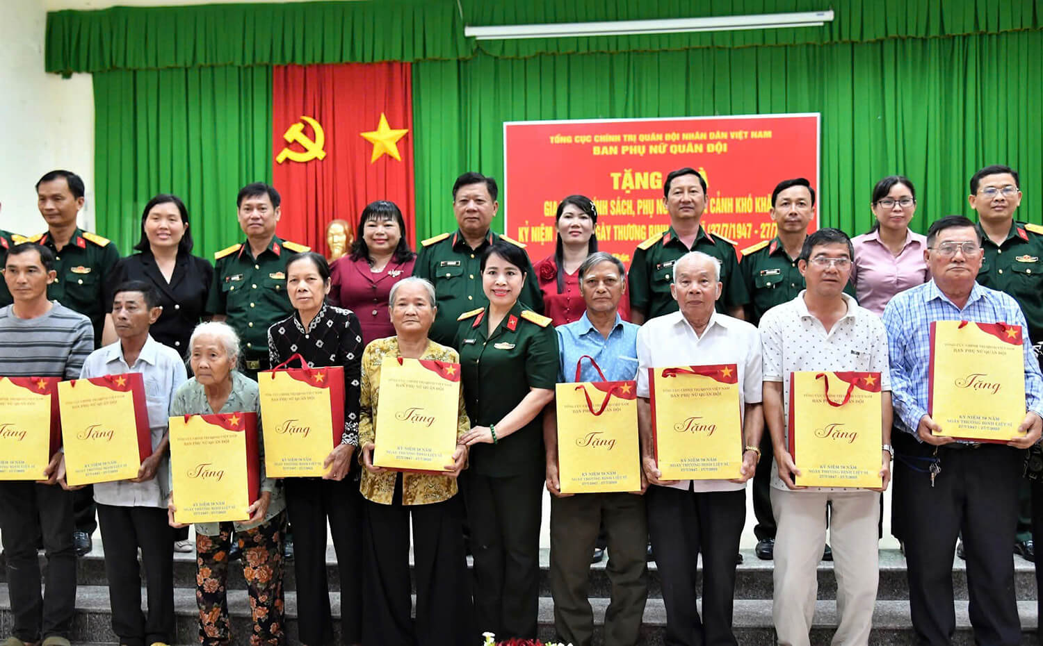 Đoàn công tác do Đại tá Nguyễn Thị Thu Hiền - Trưởng ban Phụ nữ Quân đội làm trưởng đoàn đã đến thăm hỏi, tặng quà các Bà mẹ Việt Nam anh hùng, Anh hùng lực lượng vũ trang nhân dân, thương binh và các gia đình chính sách trên địa bàn Quân khu 9. Gần 400 suất quà, với tổng trị giá hơn 600 triệu đồng, được gửi gắm trong tình cảm sâu sắc của hơn 9 vạn cán bộ, hội viên phụ nữ toàn quân, thành kính tri ân những người đã hy sinh, cống hiến vì độc lập, tự do của Tổ quốc.