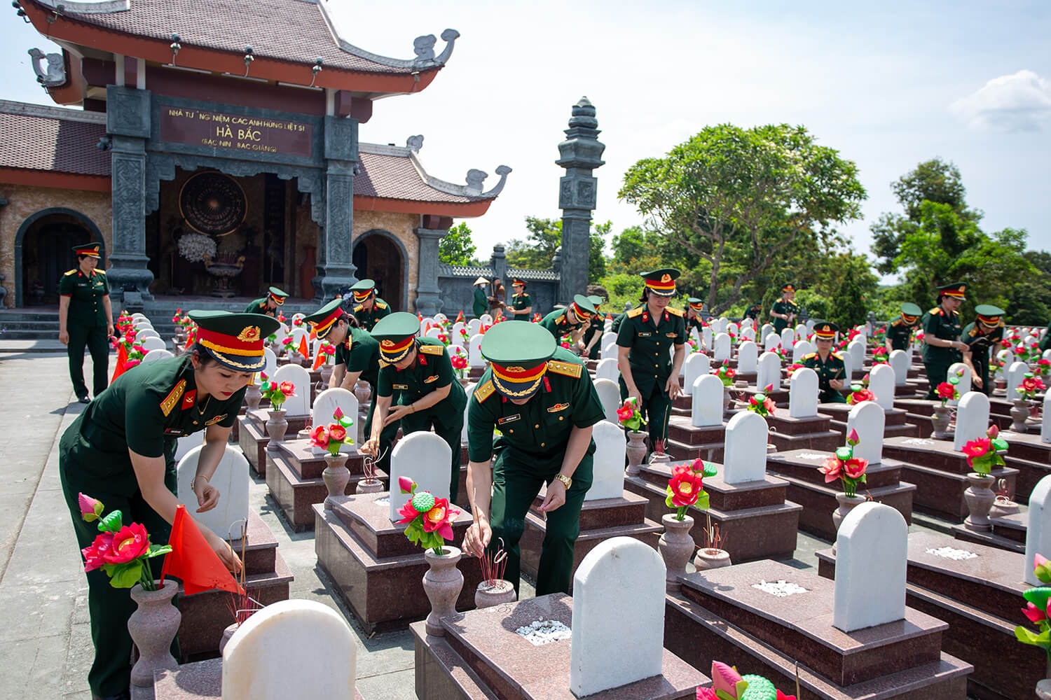 Tại mỗi địa điểm, những vòng hoa, những nén hương trầm được thành kính dâng lên. Đại tá Nguyễn Thị Thu Hiền thay mặt cán bộ, hội viên phụ nữ toàn quân bày tỏ lòng biết ơn vô hạn đối với những người đã ngã xuống cho nền độc lập, tự do của đất nước, cho hạnh phúc của nhân dân. Đồng thời, khẳng định quyết tâm của Phụ nữ Quân đội tiếp tục phát huy phẩm chất cao đẹp “Bộ đội Cụ Hồ”, xây dựng tổ chức Hội vững mạnh, góp phần giữ gìn thành quả cách mạng, giữ vững niềm tin theo con đường mà Đảng, Bác Hồ và Nhân dân đã lựa chọn.