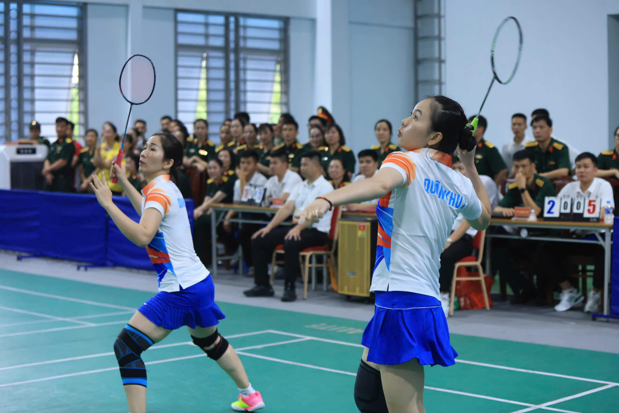 VĐV của Quân khu 7 thi đấu cầu lông đôi nữ