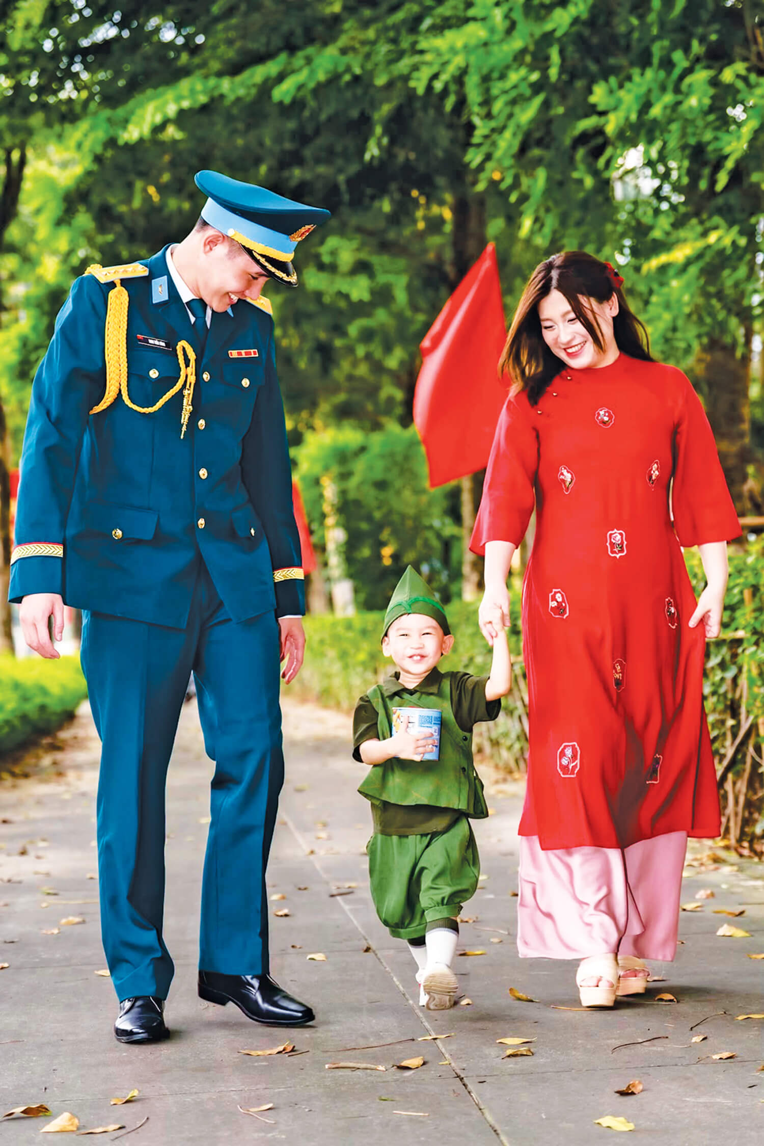 Chị Thùy Linh chia sẻ: “Tôi muốn lan tỏa hình ảnh người phụ nữ Việt hạnh phúc, vừa là hậu phương vững chắc, vừa là người hiện đại, tự tin và tích cực trong cuộc sống”. Là vợ của quân nhân, chị thấu hiểu những hy sinh thầm lặng khi chồng thường xuyên xa nhà. Trong những ngày ấy, chị vừa là mẹ, vừa là “bố”, chăm sóc con trai 2 tuổi và duy trì sự gắn kết gia đình. Những nghi thức nhỏ như để “chỗ của bố” trên giường hay kể cho con nghe kỷ niệm về bố giúp con cảm nhận sự hiện diện của người cha dù anh vắng nhà.
