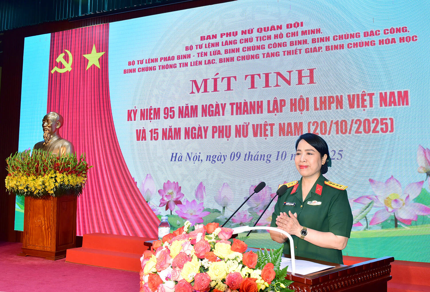 Buổi mít tinh là dịp tôn vinh những cống hiến thầm lặng nhưng cao quý của phụ nữ Quân đội, những người luôn tỏa sáng bằng trí tuệ, nghị lực và lòng nhân ái. Từ truyền thống 95 năm của Hội Liên hiệp Phụ nữ Việt Nam, thế hệ phụ nữ Quân đội hôm nay tiếp tục khẳng định bản lĩnh, trí tuệ và trách nhiệm, viết tiếp trang sử vẻ vang của người phụ nữ Việt Nam trong kỷ nguyên mới.