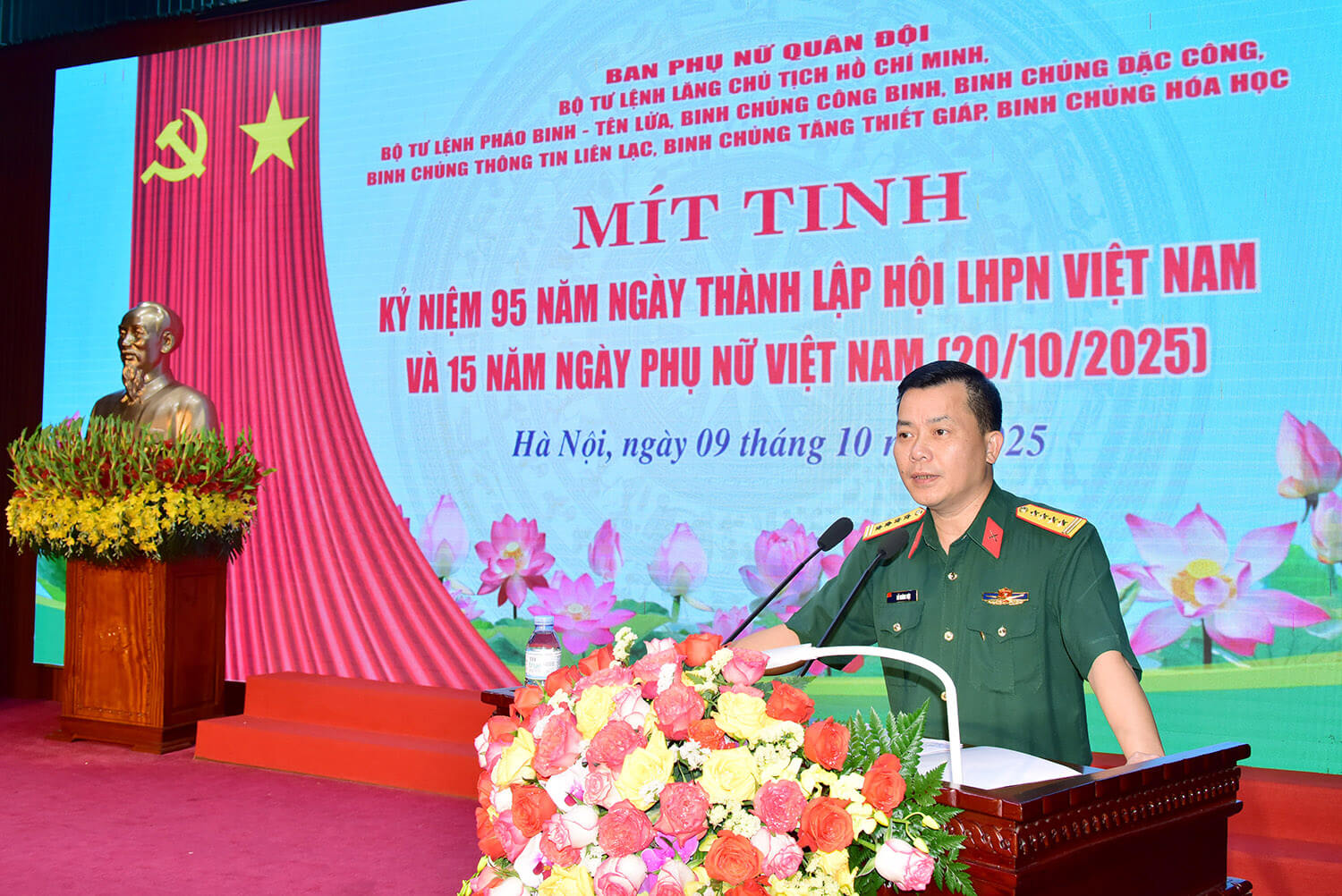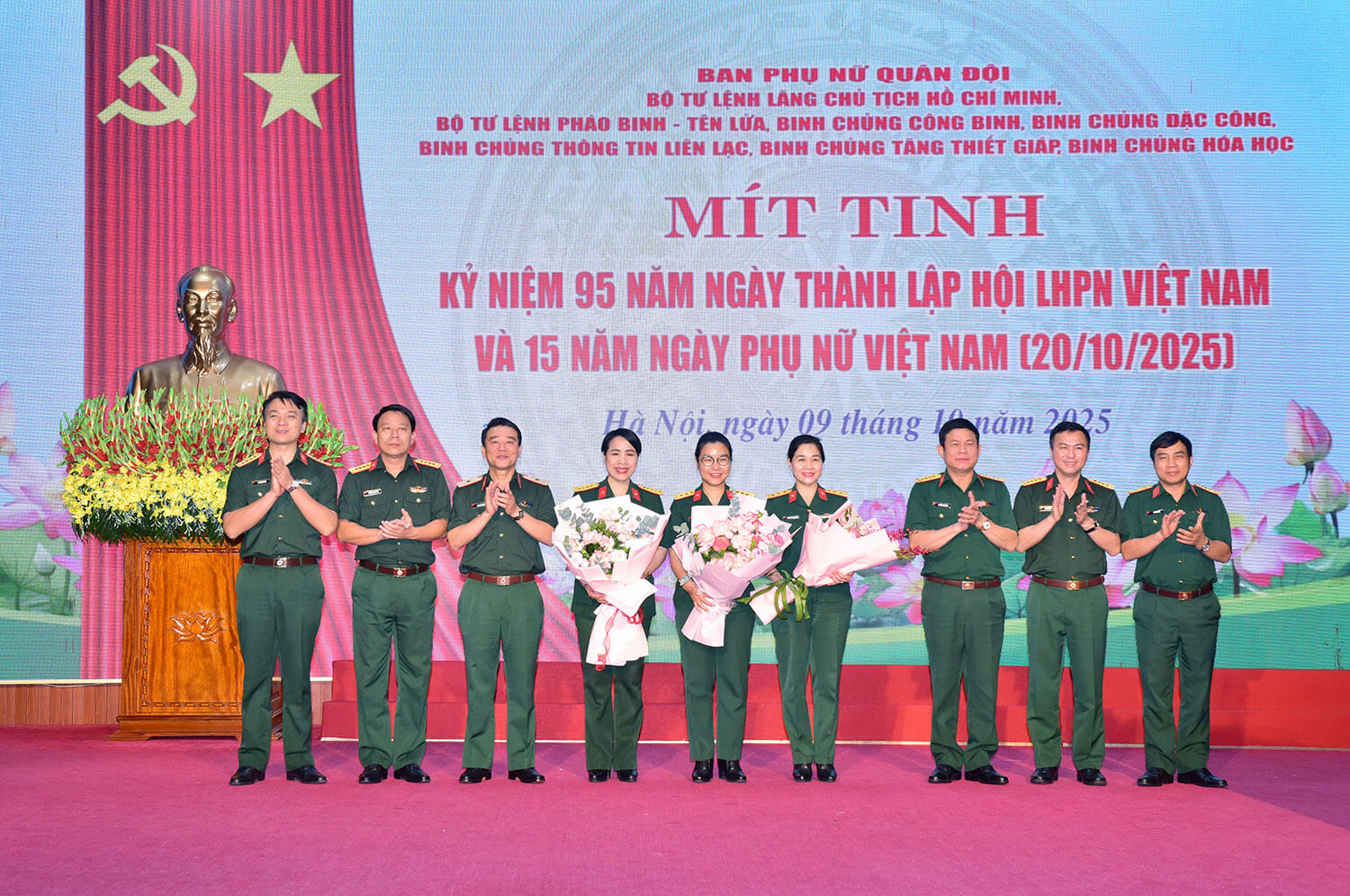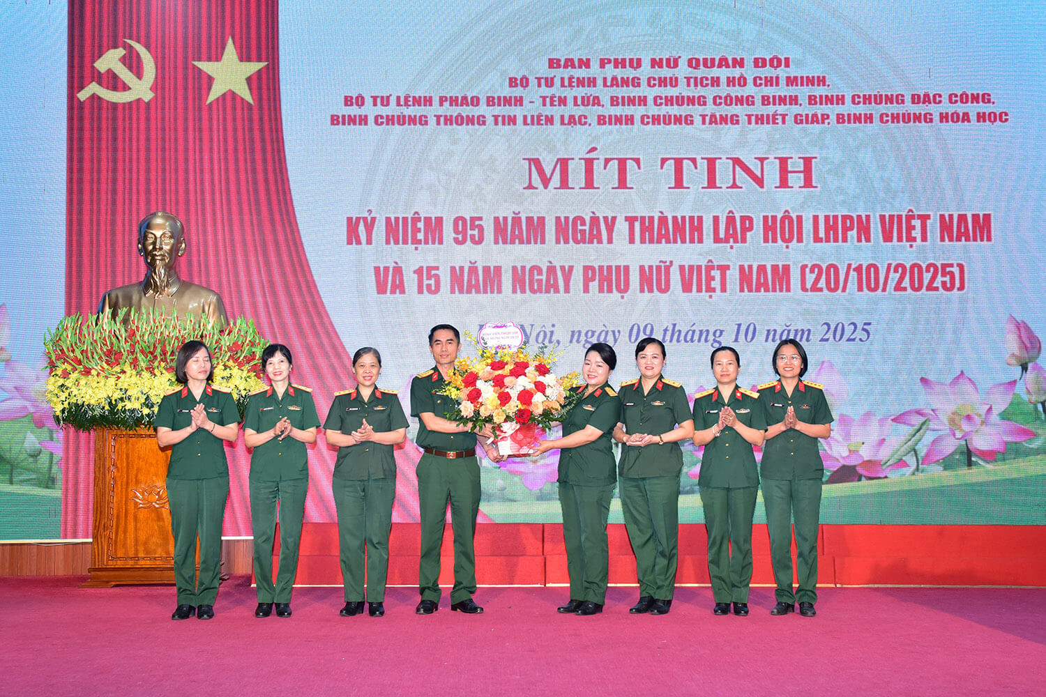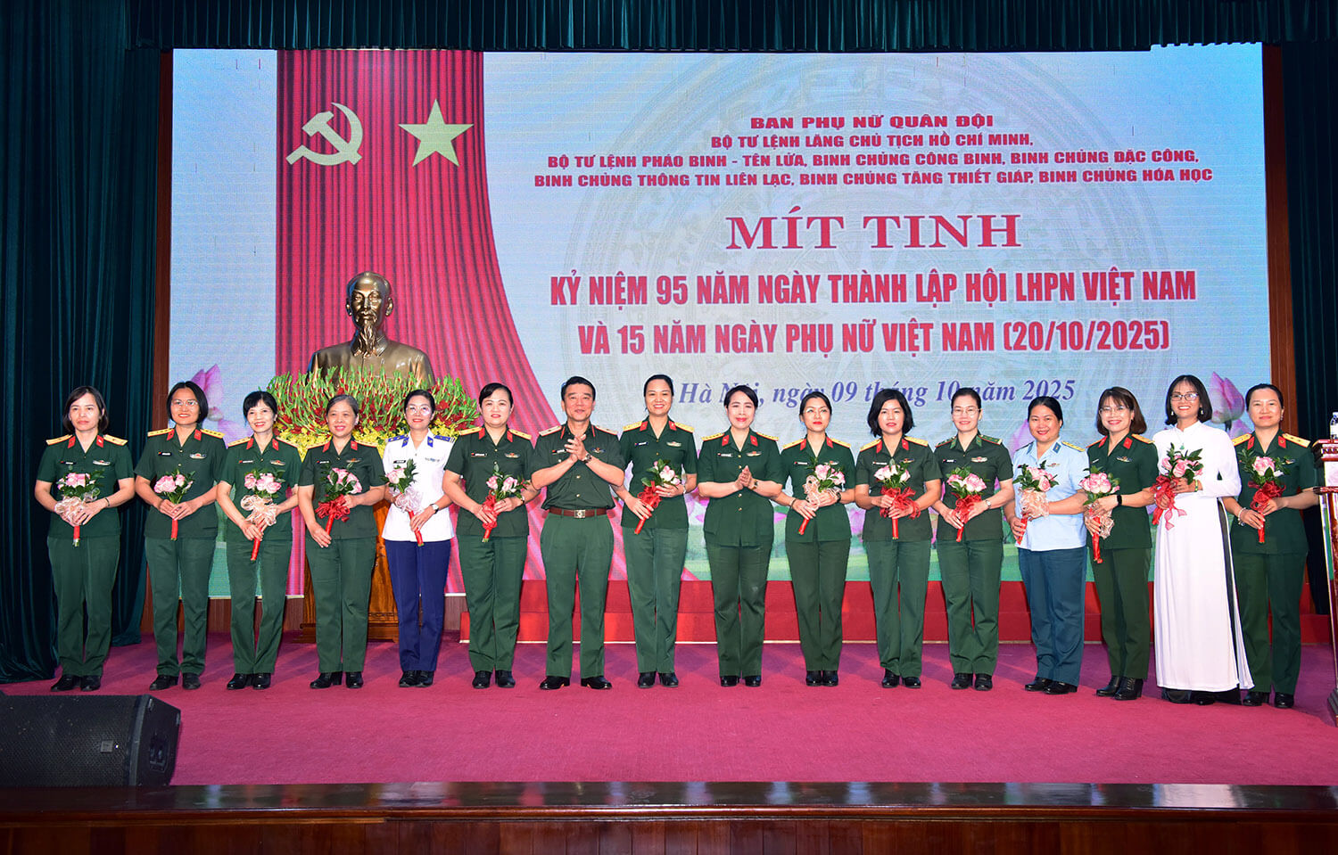 Ngày 9-10, tại Hà Nội, Ban Phụ nữ Quân đội phối hợp với Bộ Tư lệnh Lăng Chủ tịch Hồ Chí Minh, Bộ Tư lệnh Pháo binh - Tên lửa cùng các Binh chủng: Công binh, Đặc công, Thông tin liên lạc, Tăng thiết giáp và Hóa học tổ chức mít tinh kỷ niệm 95 năm Ngày thành lập Hội Liên hiệp Phụ nữ Việt Nam và 15 năm Ngày Phụ nữ Việt Nam (20-10).