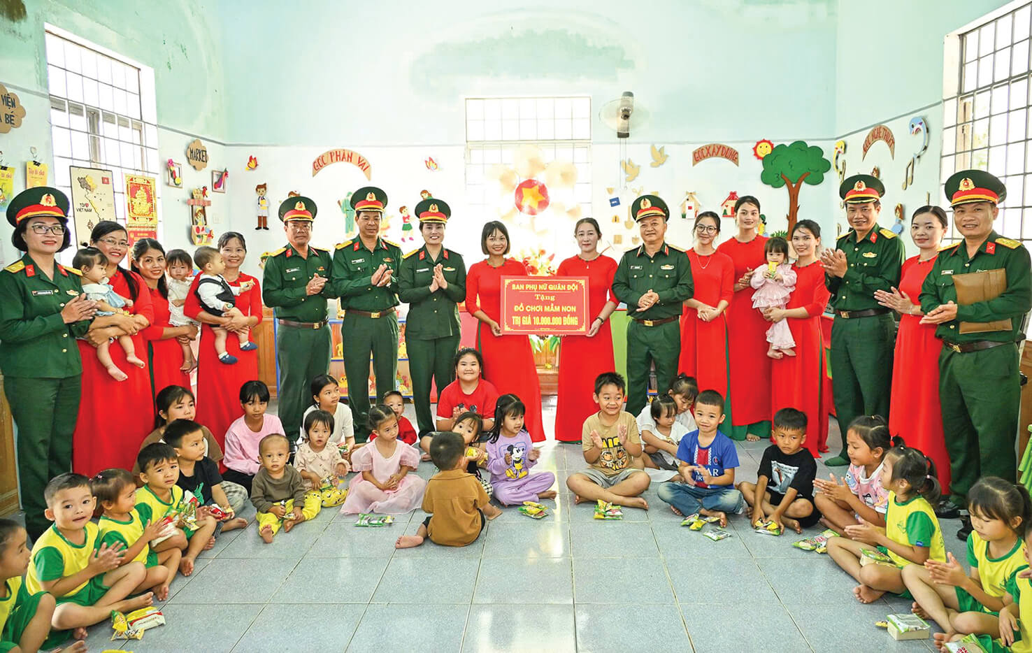 Nhân dịp này, Ban Phụ nữ Quân đội đã đến thăm, tặng quà Trường Mầm non Hoa Hướng Dương (Đoàn KT-QP 717) và Nhà trẻ 710 (Đoàn KT-QP 710), thể hiện tình cảm, sự đồng hành và sự tri ân đối với đội ngũ giáo viên mầm non đang ngày đêm chăm sóc, dạy dỗ con em đồng bào nơi biên giới. Đây cũng là nguồn động viên tinh thần quan trọng, góp phần tiếp thêm nghị lực để các cô vượt qua khó khăn, yên tâm cống hiến, góp phần củng cố vững chắc quốc phòng, an ninh trên địa bàn. Tổng trị giá các hoạt động hỗ trợ trong dịp này là 120 triệu đồng.