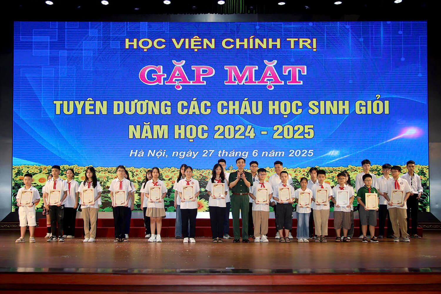 Hưởng ứng Tháng hành động vì trẻ em và ngày Gia đình Việt Nam, tối 27-6-2025, Học viện Chính trị gặp mặt, tuyên dương các cháu học sinh giỏi, học sinh xuất sắc năm học vừa qua.