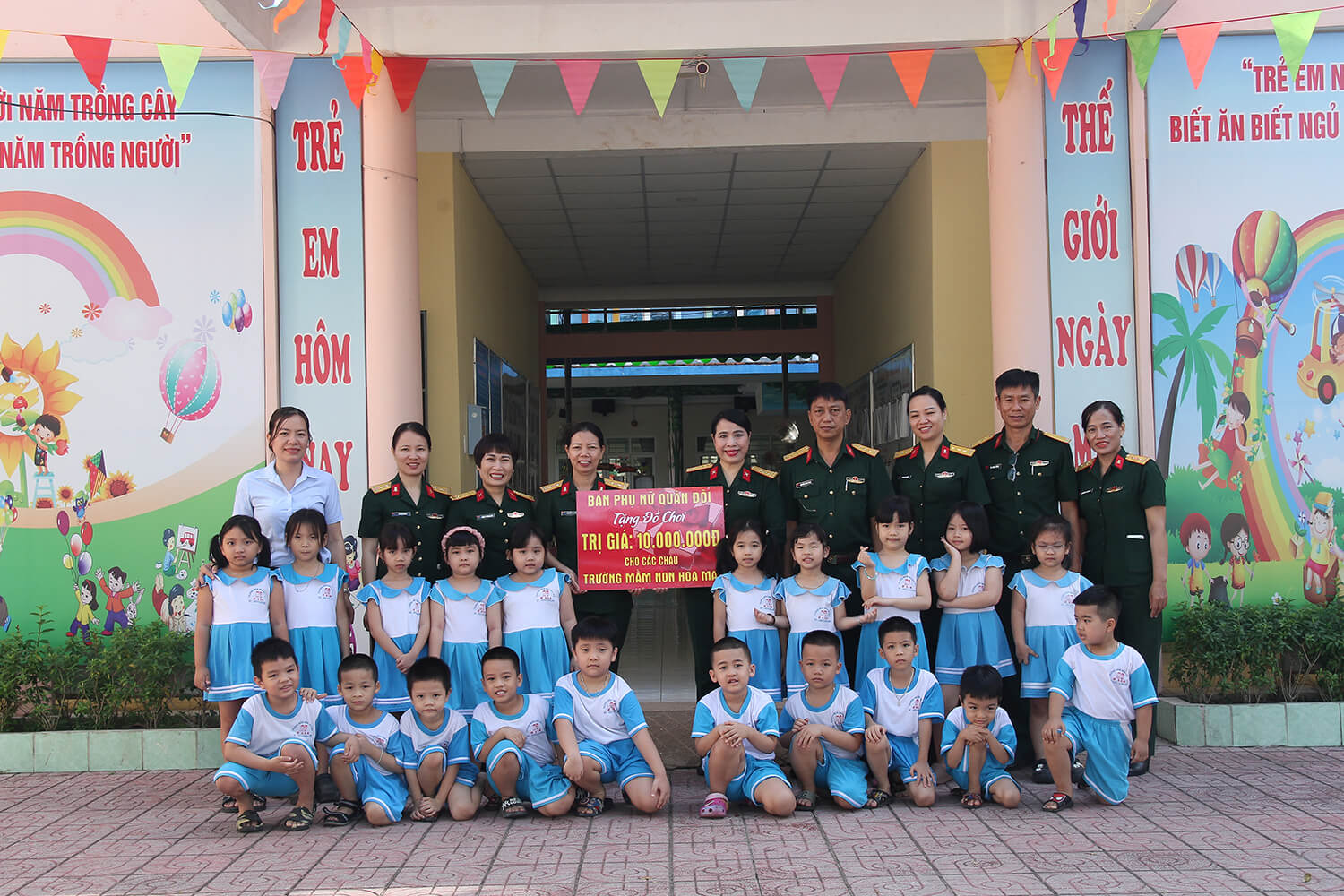 Thực hiện Kế hoạch Công tác phụ nữ năm 2025, tuần 4 tháng 2 vừa qua, Ban Phụ nữ Quân đội (PNQĐ) do Đại tá Nguyễn Thị Thu Hiền, Trưởng ban PNQĐ, Trưởng đoàn công tác đã tới thăm, làm việc và tặng đồ dùng, đồ chơi trị giá gần 100 triệu đồng hỗ trợ cho hoạt động chăm sóc, giáo dục trẻ tại các cơ sở giáo dục mầm non (GDMN) trong Quân đội đóng quân trên địa bàn các xã biên giới, hải đảo, vùng đặc biệt khó khăn.