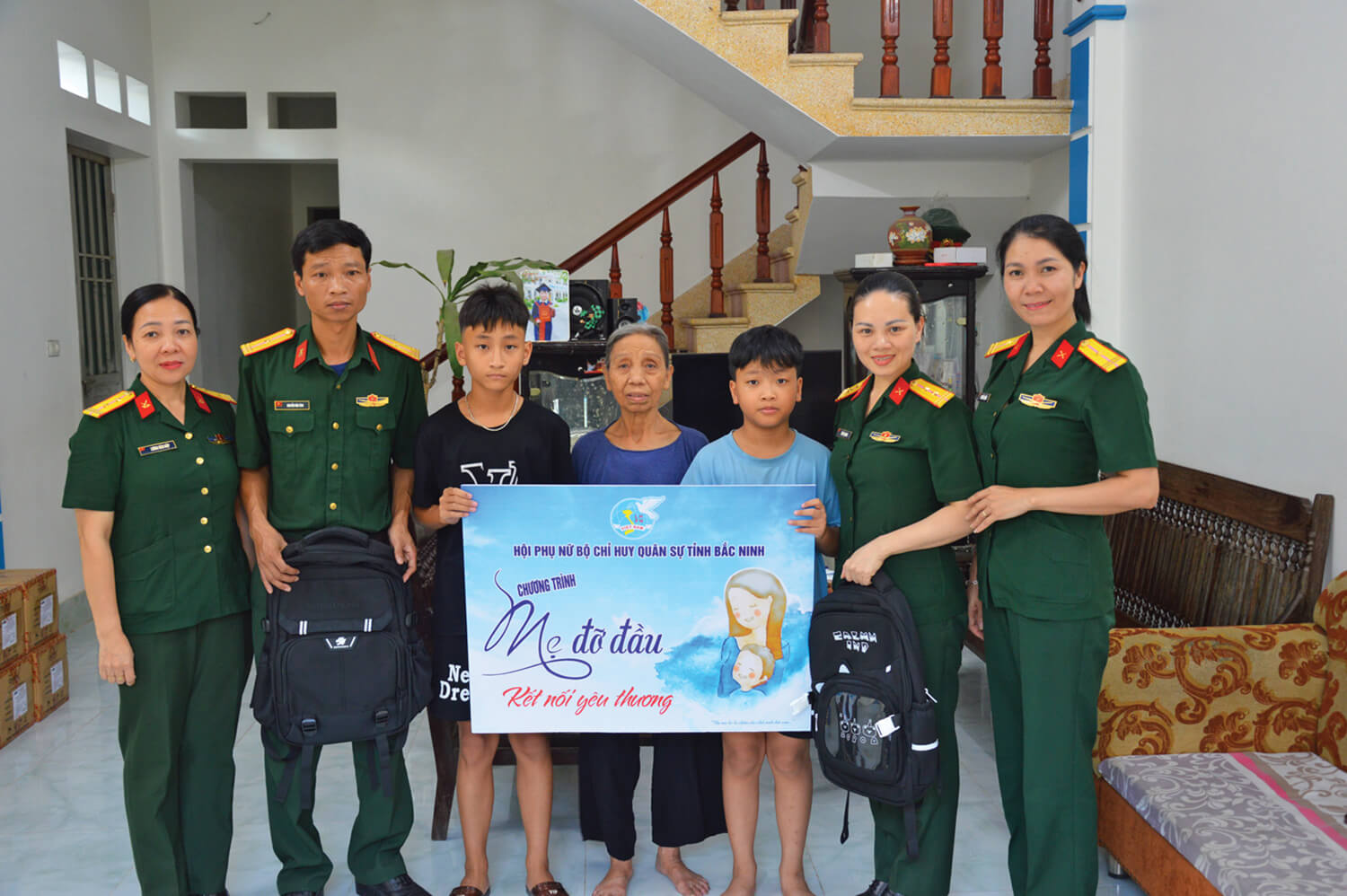 Khi tiếng trống khai trường rộn rã vang lên trên khắp nẻo quê hương Kinh Bắc, mang theo những phần quà ý nghĩa, Hội Phụ nữ Bộ Chỉ huy Quân sự (CHQS) tỉnh Bắc Ninh đã đến thăm hai cháu Nguyễn Minh Đức và Nguyễn Nam Trung, con của Thiếu tá QNCN Nguyễn Văn Tích, Phòng Hậu cần - Kỹ thuật, Bộ CHQS tỉnh. Mẹ mất sớm, các em sống cùng bố và bà nội trong hoàn cảnh rất khó khăn. Thông qua chương trình “Mẹ đỡ đầu”, Hội Phụ nữ cơ quan đã kết nối yêu thương, giúp đỡ các cháu bằng cả vật chất lẫn lời động viên, tiếp thêm sức mạnh để các em vững bước vào năm học mới. Đây là việc làm nhân ái được Hội duy trì đều đặn trong nhiều năm qua.