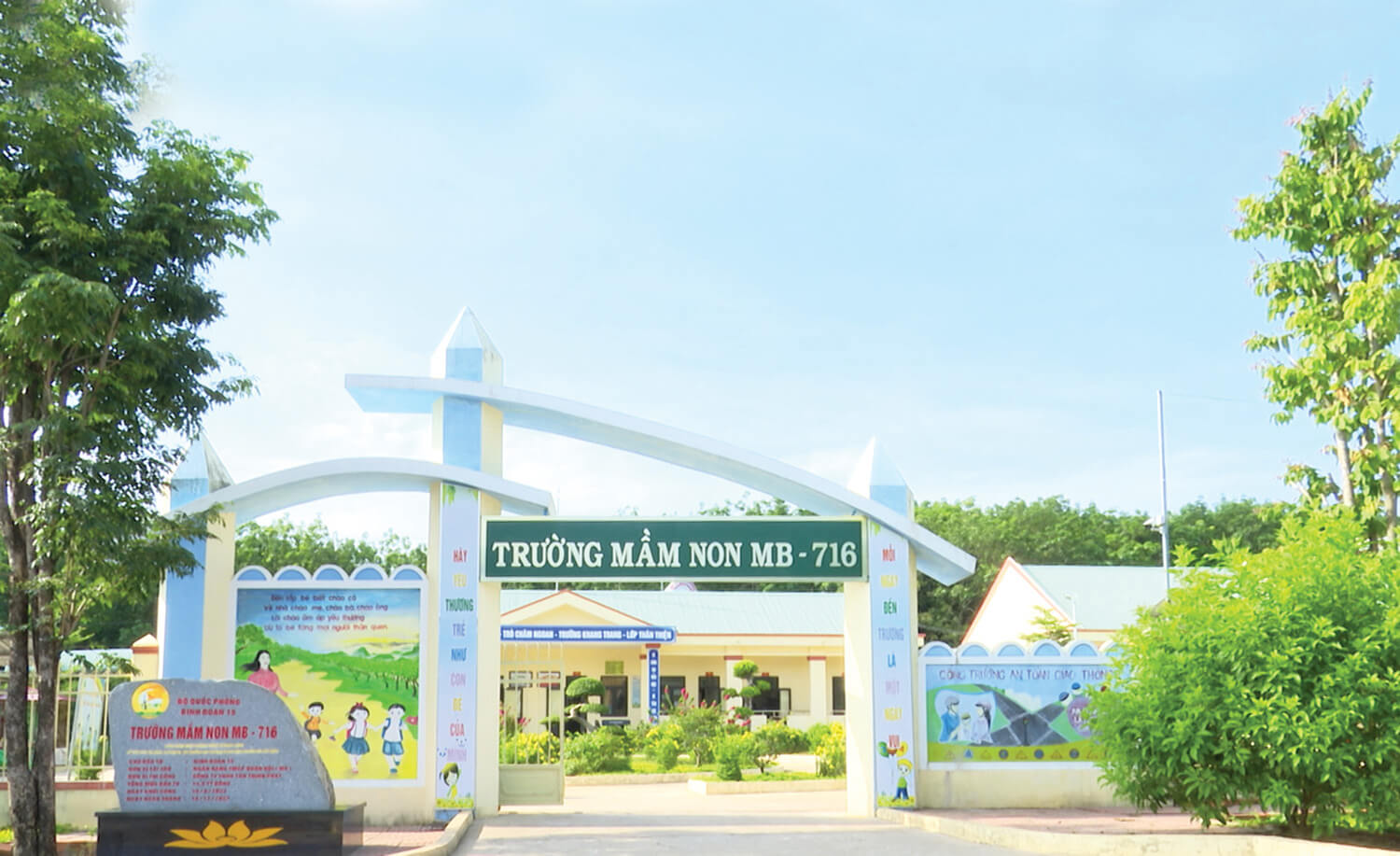 Hiện nay, Trường Mầm non MB716 có 1 điểm trường trung tâm và 10 điểm trường tại các đội sản xuất, nằm dọc vành đai biên giới xã Ia Đal, tỉnh Quảng Ngãi. Với chủ trương dành điều kiện tốt nhất cho trẻ, Binh đoàn và Chi nhánh đã đầu tư xây dựng trường lớp khang trang, cơ sở vật chất đầy đủ, đồng bộ, đồng thời bố trí đội ngũ giáo viên, nhân viên tận tâm, yêu nghề và yêu trẻ.