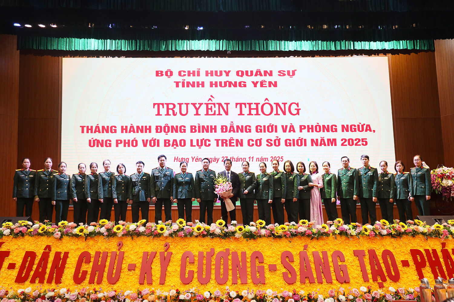 Chiều 27-11, Bộ CHQS tỉnh Hưng Yên tổ chức chương trình truyền thông hưởng ứng “Tháng hành động vì bình đẳng giới và phòng ngừa, ứng phó với bạo lực trên cơ sở giới” năm 2025, với sự tham dự của lãnh đạo Bộ CHQS tỉnh, đại biểu Cục Chính trị Quân khu 3 cùng cán bộ, hội viên phụ nữ lực lượng vũ trang tỉnh.