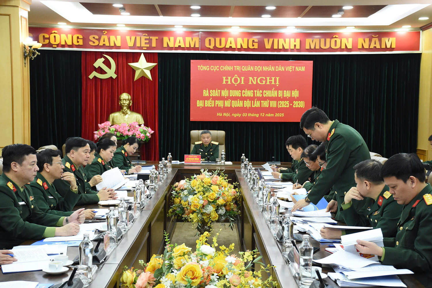 Sáng 3-12, Tổng cục Chính trị Quân đội nhân dân (QĐND) Việt Nam tổ chức Hội nghị rà soát nội dung công tác chuẩn bị Đại hội đại biểu Phụ nữ Quân đội lần thứ VIII (2025-2030). Thượng tướng Lê Quang Minh, Phó chủ nhiệm Tổng cục Chính trị QĐND Việt Nam chủ trì hội nghị.