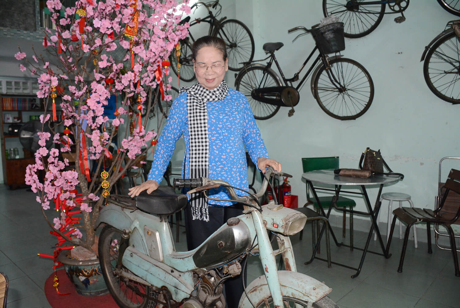 Bà Chính Nghĩa bên chiếc Mobylette gắn với những lần ngược xuôi làm nhiệm vụ của bà