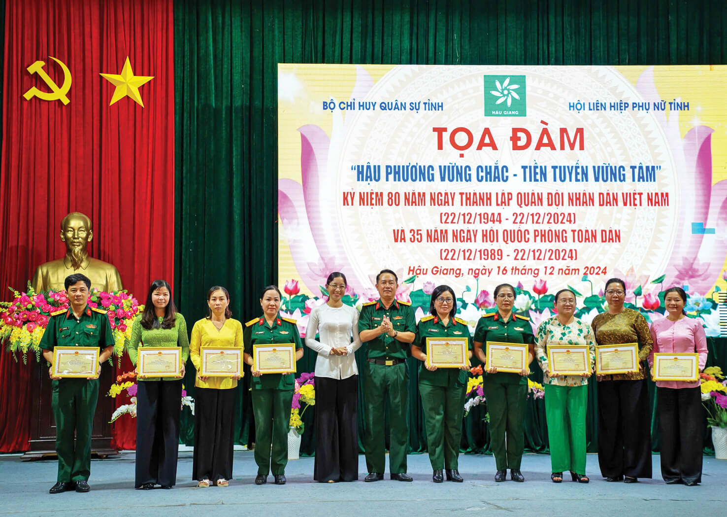 Mô hình “Đường hoa - Nhà sạch” được triển khai với sự phối hợp của Hội Liên hiệp Phụ nữ tỉnh Hậu Giang, góp phần lan tỏa ý thức bảo vệ môi trường. Người dân được tuyên truyền, vận động trồng cây xanh, trồng hoa, phân loại rác tại nguồn, cùng nhau gìn giữ cảnh quan xanh, sạch, đẹp. Bên cạnh đó, hội đã trao tặng 200 sọt rác cho các cơ sở hội phụ nữ địa phương, với tổng trị giá gần 18 triệu đồng. Chương trình “Hậu phương vững chắc - Tiền tuyến vững tâm” cũng để lại nhiều dấu ấn sâu sắc. Hơn 320 gia đình quân nhân được hỗ trợ với tổng kinh phí trên 1,8 tỷ đồng; hơn 1.300 phần quà được trao tặng cho các gia đình có thanh niên trúng tuyển nghĩa vụ quân sự, thể hiện sự quan tâm, đồng hành đầy nghĩa tình của hậu phương đối với tiền tuyến.