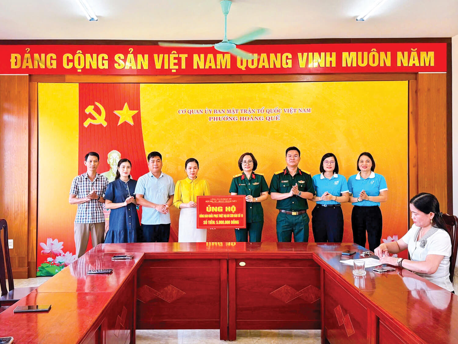 Không chỉ dừng lại ở các hoạt động kỷ niệm, phụ nữ Binh đoàn 19 còn lan tỏa yêu thương và trách nhiệm xã hội thông qua những chương trình hướng về cộng đồng. Các tổ chức Hội tích cực tham gia phong trào “Phụ nữ Quân đội đồng hành cùng phụ nữ biên cương”, “Mẹ đỡ đầu”, “Tiếp bước em đến trường”, thăm, tặng quà phụ nữ và trẻ em có hoàn cảnh khó khăn với tổng trị giá 100 triệu đồng. Song song, các mô hình “Heo đất tiết kiệm”, “Phụ nữ nói không với rác thải nhựa, túi nilon” được duy trì hiệu quả, gắn với các hoạt động trồng cây, chăm sóc vườn hoa, vườn rau xanh, dọn vệ sinh môi trường, khơi thông cống rãnh, góp phần xây dựng đơn vị “xanh - sạch - đẹp”, văn minh, bền vững.