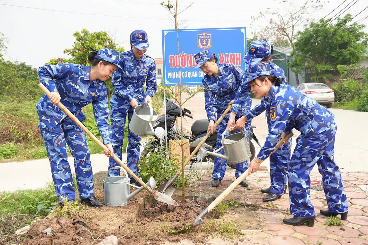 Sáng 6-3-2026, tại xã Chương Dương (TP Hà Nội), Phụ nữ Cơ quan Bộ Tư lệnh Cảnh sát biển phối hợp với Đoàn Thanh niên xã Chương Dương tổ chức phát động Tết trồng cây “Đời đời nhớ ơn Bác Hồ” với khẩu hiệu “Trồng cây xanh - Phụ nữ, đoàn viên Cảnh sát biển và tuổi trẻ xã Chương Dương vun trồng tương lai”. Tham dự chương trình có đại diện lãnh đạo địa phương, cán bộ, hội viên phụ nữ, đoàn viên thanh niên Cảnh sát biển và đoàn viên thanh niên xã Chương Dương.