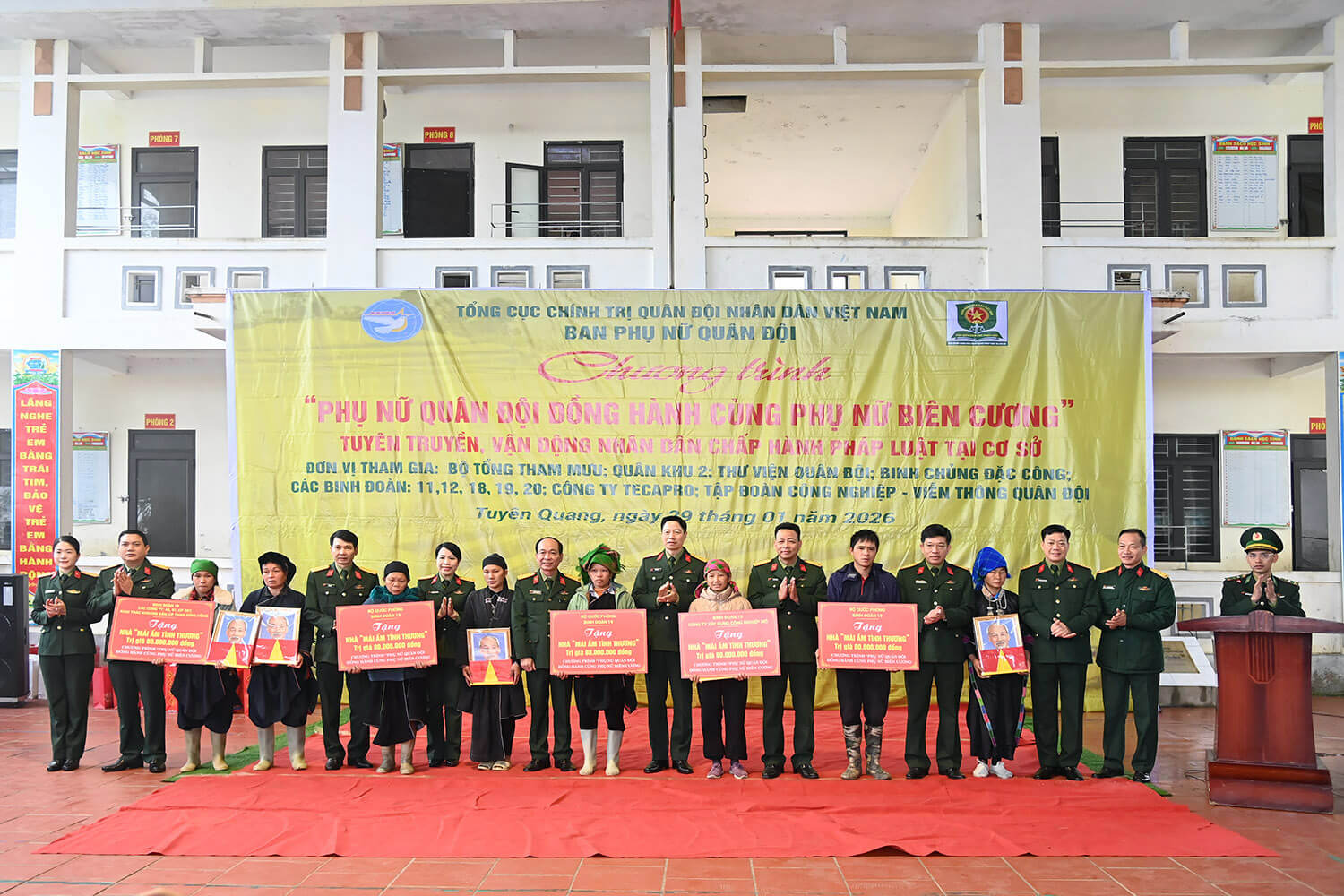 Qua 5 năm triển khai Chương trình “Phụ nữ Quân đội đồng hành cùng phụ nữ biên cương” (giai đoạn 2021-2025), Ban Phụ nữ Quân đội và các cơ quan, đơn vị đồng hành đã đã hỗ trợ xây dựng, trao tặng 58 nhà “Mái ấm tình thương” cùng các gói quà hỗ trợ dân sinh với tổng trị giá gần 13 tỷ đồng. Thông qua những việc làm cụ thể, thiết thực và bền bỉ theo thời gian, Chương trình tiếp tục khẳng định vai trò, trách nhiệm và hình ảnh đẹp của phụ nữ Quân đội trong thời kỳ mới, góp phần cùng cấp ủy, chính quyền và nhân dân địa phương xây dựng vùng biên giới ngày càng ổn định, phát triển, vững chắc về quốc phòng - an ninh.
