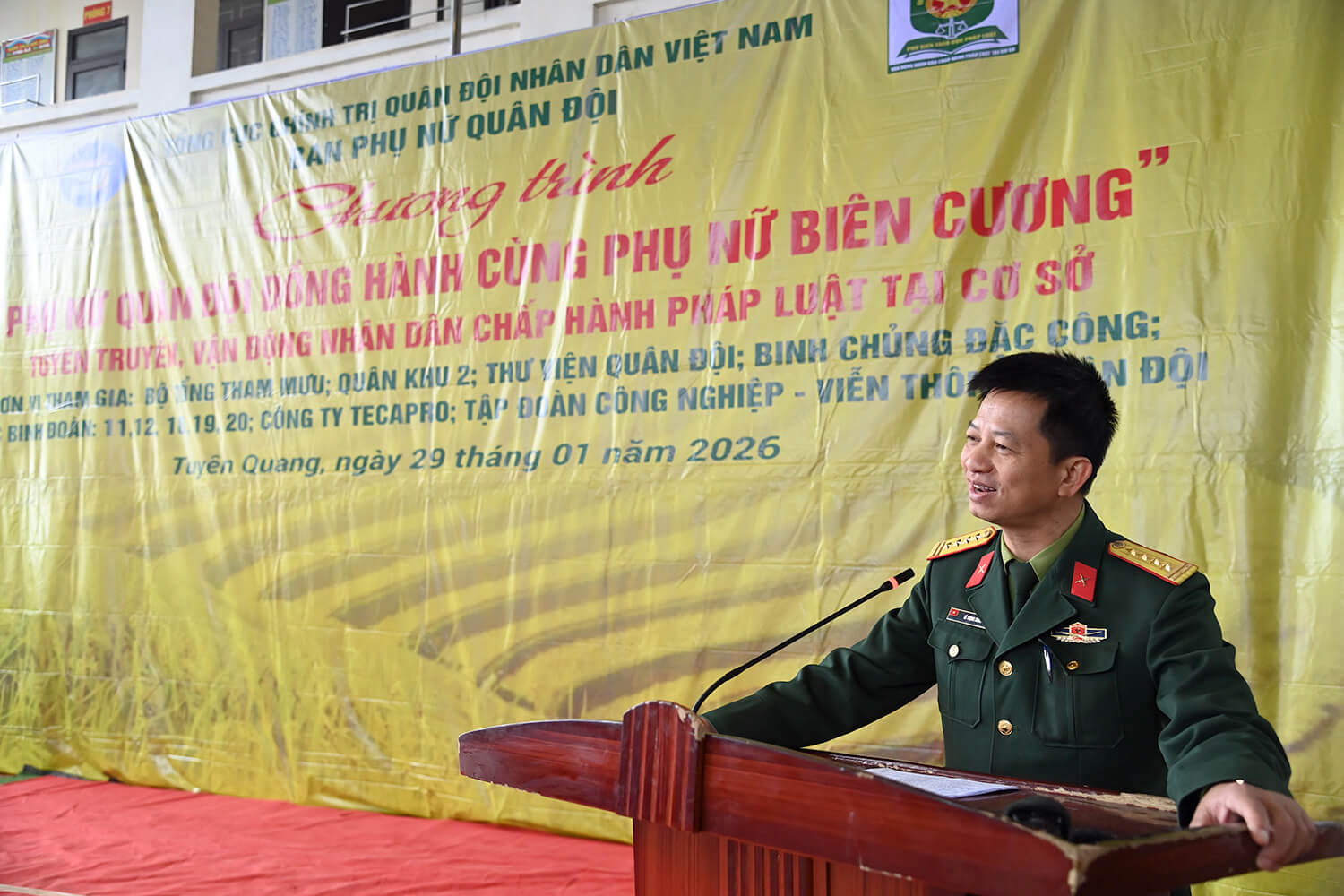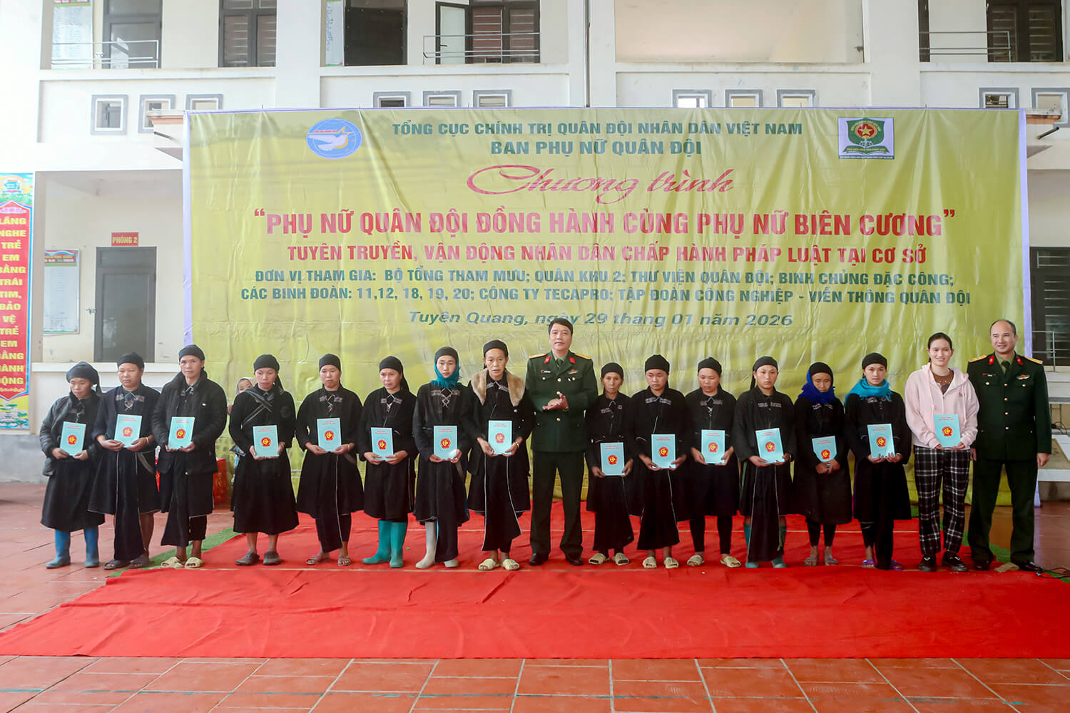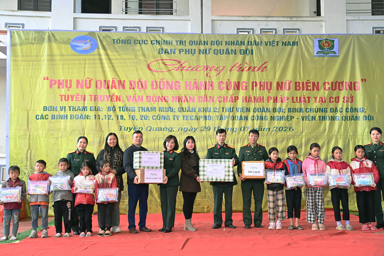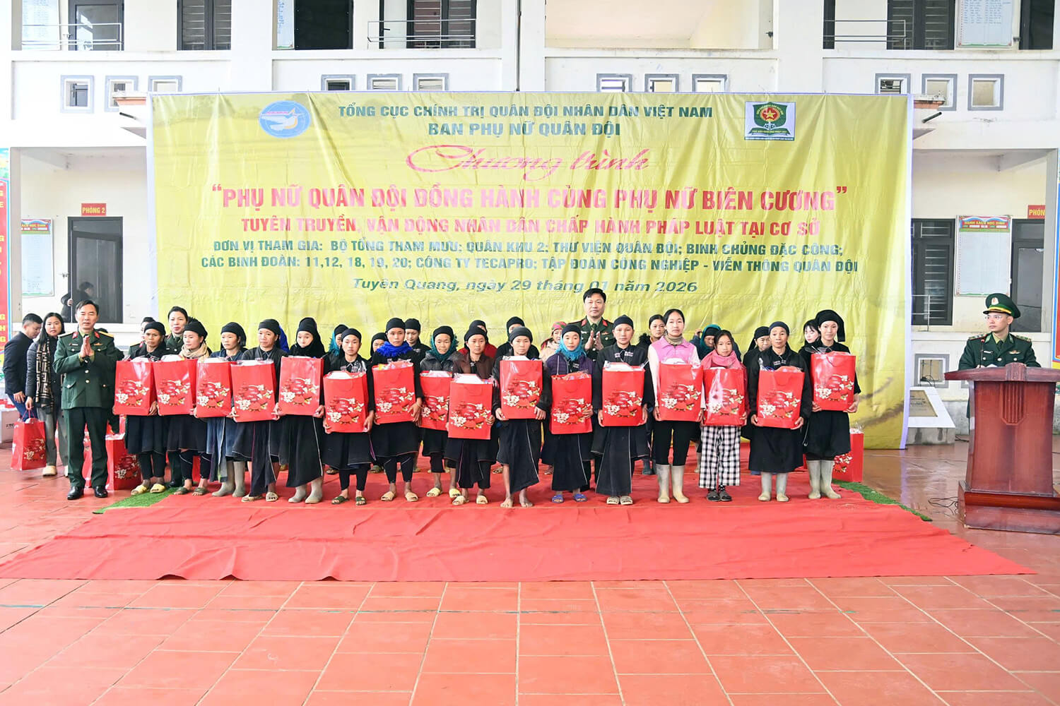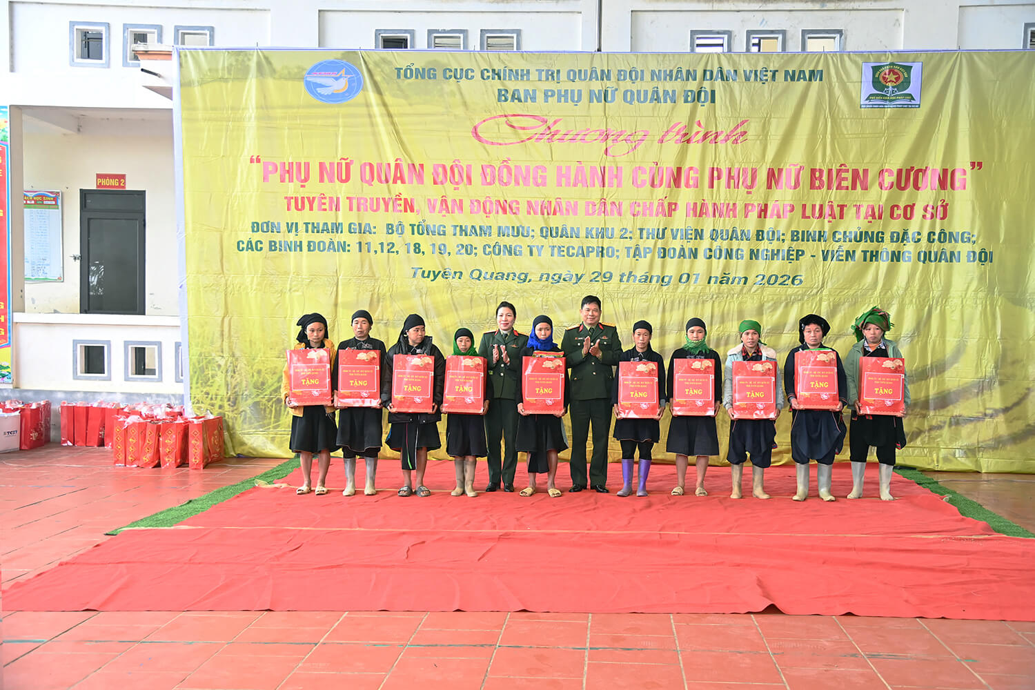 Trong không khí ấm áp của những ngày đầu xuân mới, Ban Phụ nữ Quân đội phối hợp với Cục Chính trị Quân khu 2 và cơ quan chính trị các đơn vị: Bộ Tổng Tham mưu, Binh chủng Đặc công, các Binh đoàn 11, 12, 18, 19, 20, Tập đoàn Công nghiệp - Viễn thông Quân đội, Công ty Tecapro; Bộ Chỉ huy Quân sự tỉnh Tuyên Quang và Thư viện Quân đội tổ chức Chương trình “Phụ nữ Quân đội đồng hành cùng phụ nữ biên cương” tại xã Nàn Xỉn, tỉnh Tuyên Quang - địa bàn biên giới còn nhiều khó khăn nhưng giàu truyền thống cách mạng, đoàn kết và kiên cường.