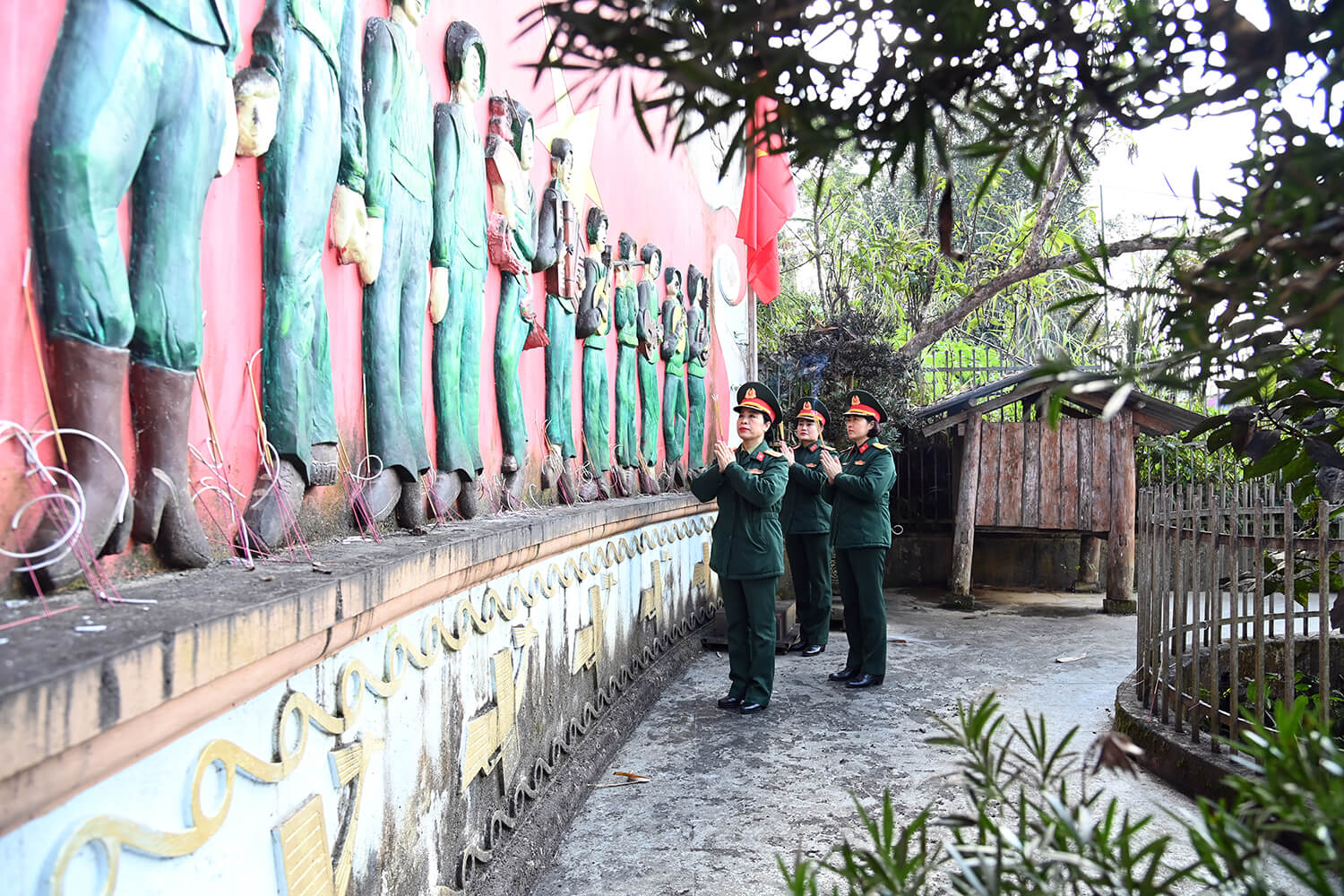 Nhân dịp này, đoàn công tác đã tổ chức dâng hương, dâng hoa tri ân 11 Anh hùng liệt sĩ Đội văn công hỏa tuyến Trung đoàn 148 tại xã Nàn Ma (Xín Mần, Hà Giang), nay thuộc tỉnh Tuyên Quang. Cách đây hơn 60 năm, trong khi làm nhiệm vụ phục vụ chiến đấu tại Mặt trận Tây Bắc, 11 chiến sĩ văn công đã anh dũng hy sinh. Rạng sáng ngày 15-5-1952, bị giặc phỉ bao vây, các anh chị chỉ với vài vũ khí thô sơ vẫn kiên cường chiến đấu đến viên đạn cuối cùng; bốn chiến sĩ bị bắt vẫn hiên ngang cất cao tiếng hát trước họng súng của kẻ thù. Sự hy sinh bi tráng ấy đã trở thành khúc tráng ca bất tử giữa đại ngàn Tây Bắc. Hôm nay, Nàn Ma đã bình yên, nhưng ký ức về các anh, chị vẫn luôn được đất và người nơi đây gìn giữ, trân trọng và tri ân.