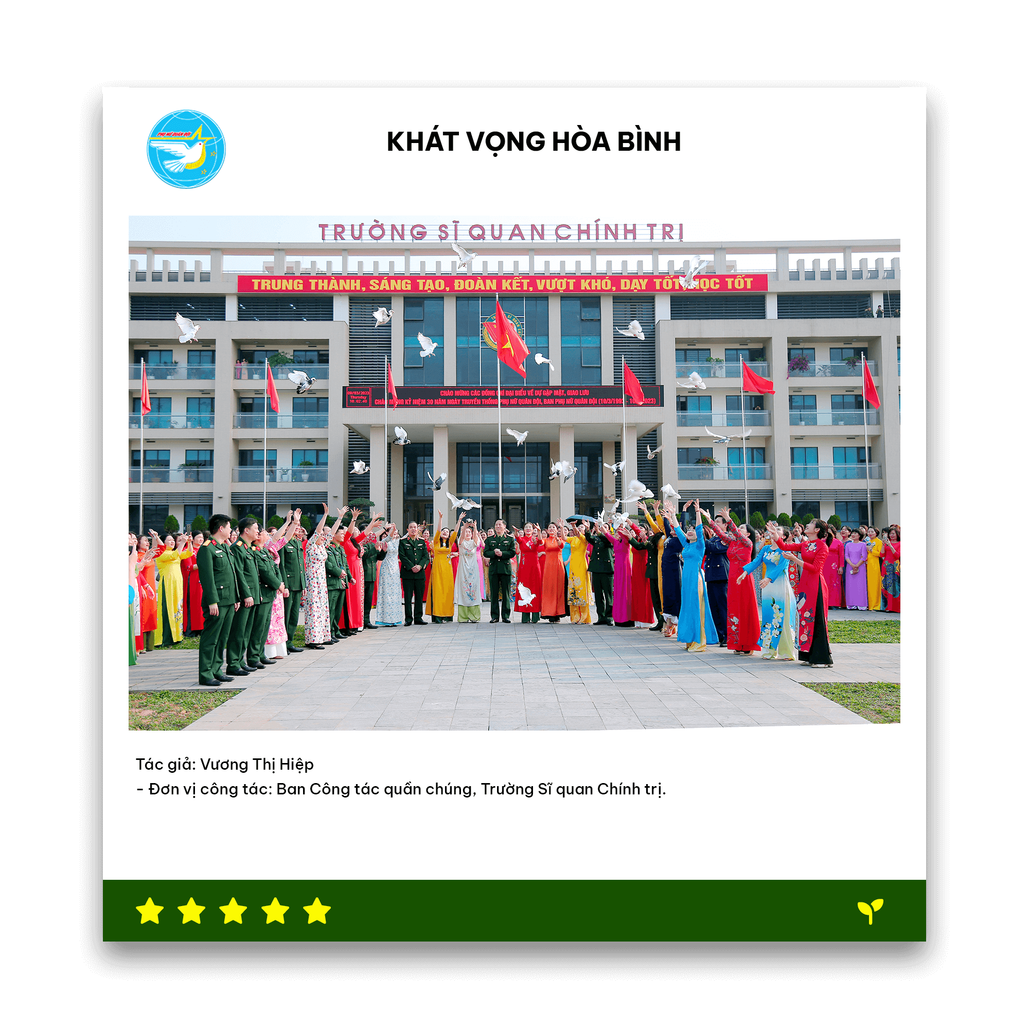 Ngắm nhìn đội hình Lớp tập huấn cùng lãnh đạo chỉ huy Nhà trường tham gia hoạt động thả “Bồ câu” - biểu tượng cho khát vọng hòa bình, tôi không khỏi tự hào và kiêu hãnh. Hình ảnh phụ nữ Quân đội trong tà áo dài truyền thống rực rỡ, trẻ trung và mềm mại, toát lên tinh thần đoàn kết, nhân ái, tự tin và nhiệt huyết mãnh liệt. Một bức tranh tập thể tràn đầy sức sống, chan chứa tình đồng chí, đồng đội. Những cánh Bồ câu trắng bay lên từ vòng tay dang rộng như lời nhắn gửi về khát vọng hòa bình, sự tự do và niềm tin vững chắc vào tương lai tươi sáng của đất nước.