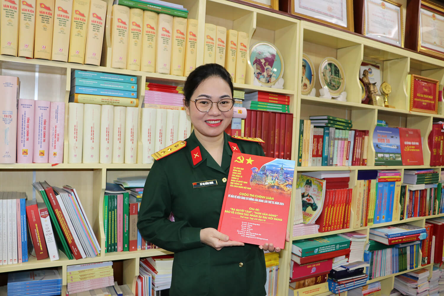 Bên cạnh đó, chị còn tham gia đề xuất ban hành Thông tư 167/2021/TT-BQP, tạo hành lang pháp lý quan trọng, bảo vệ và thúc đẩy bình đẳng giới trong Quân đội. Chị tham mưu giúp lãnh đạo, chỉ huy đơn vị và cùng đồng đội biên soạn hàng chục tài liệu về giáo dục chính trị, hướng dẫn công tác phụ nữ, tuyên truyền bình đẳng giới - những “tài sản trí tuệ” có giá trị bền lâu, phục vụ hàng nghìn cán bộ trong và ngoài quân đội.