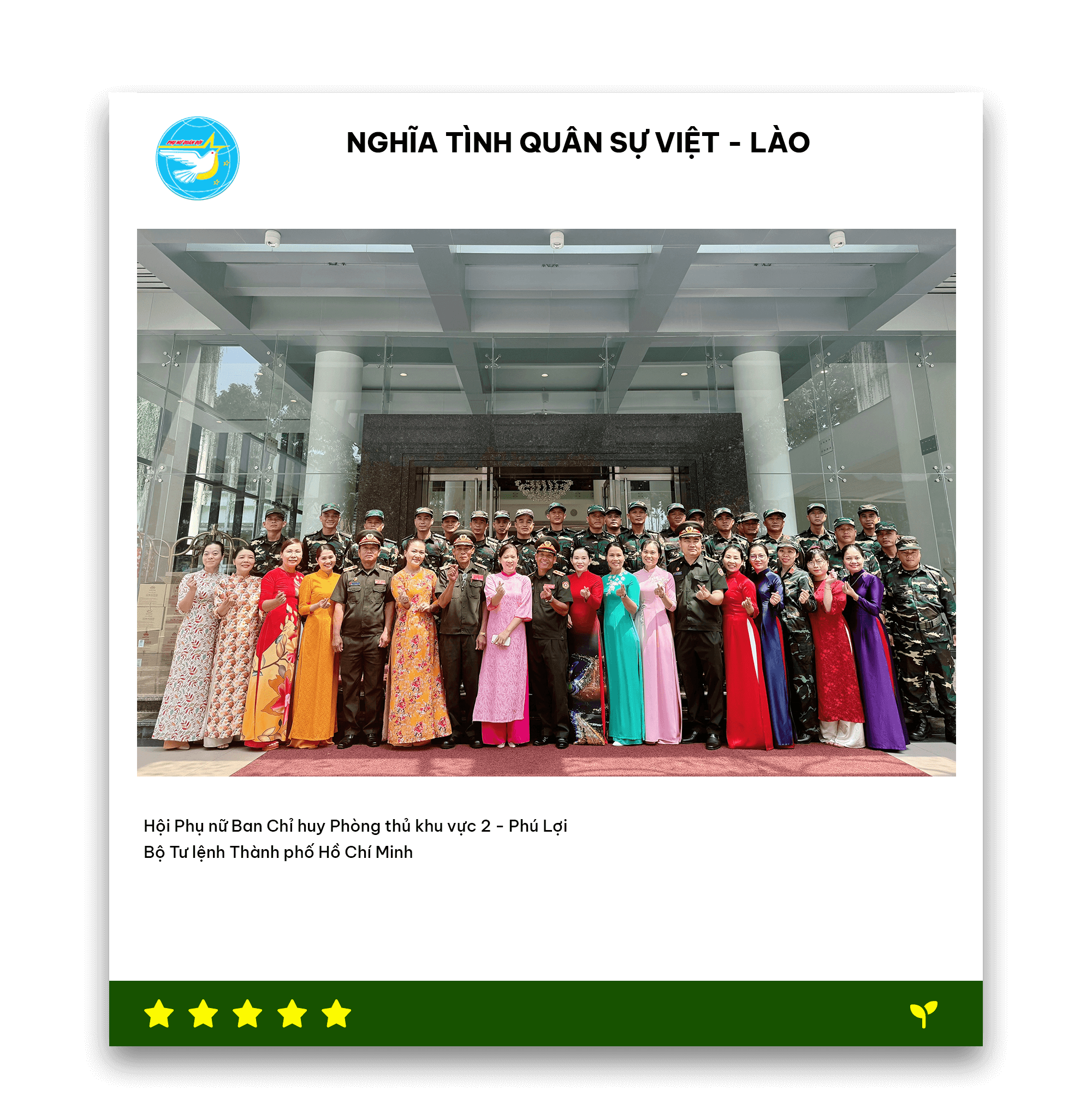 Buổi đón tiếp Đoàn Quân đội Nhân dân Lào sang Việt Nam tham dự Lễ diễu binh, diễu hành nhâp dịp kỷ niệm 50 năm ngày Giải phóng miền Nam, thống nhất đất nước (30/4/1975 – 30/4/2025) là niềm vinh dự, tự hào của Phụ nữ Ban Chỉ huy Phòng thủ khu vực 2 – Phú Lợi/Bộ Tư lệnh Thành phố Hồ Chí Minh, để lại nhiều khoảnh khắc thiêng liêng, niềm xúc cảm dâng trào. Trong tà áo dài truyền thống, các chị em vừa toát lên nét duyên dáng, dịu dàng, vừa bày tỏ lòng trân trọng và sự hiếu khách chân thành. Hình ảnh áo dài rực rỡ sánh vai cùng quân phục chỉnh tề không chỉ tạo nên bức tranh gắn kết hài hòa, mà còn gửi gắm thông điệp mạnh mẽ về tình hữu nghị, đoàn kết quốc tế và khát vọng hòa bình bền vững của dân tộc Việt Nam nói chung và tình nghĩa quân sự Việt – Lào nói riêng; đây chính là dấu ấn khó quên, lan tỏa niềm tự hào về một Việt Nam mến khách, bản lĩnh và giàu truyền thống, yêu chuộng hòa bình trong lòng bạn bè quốc tế.