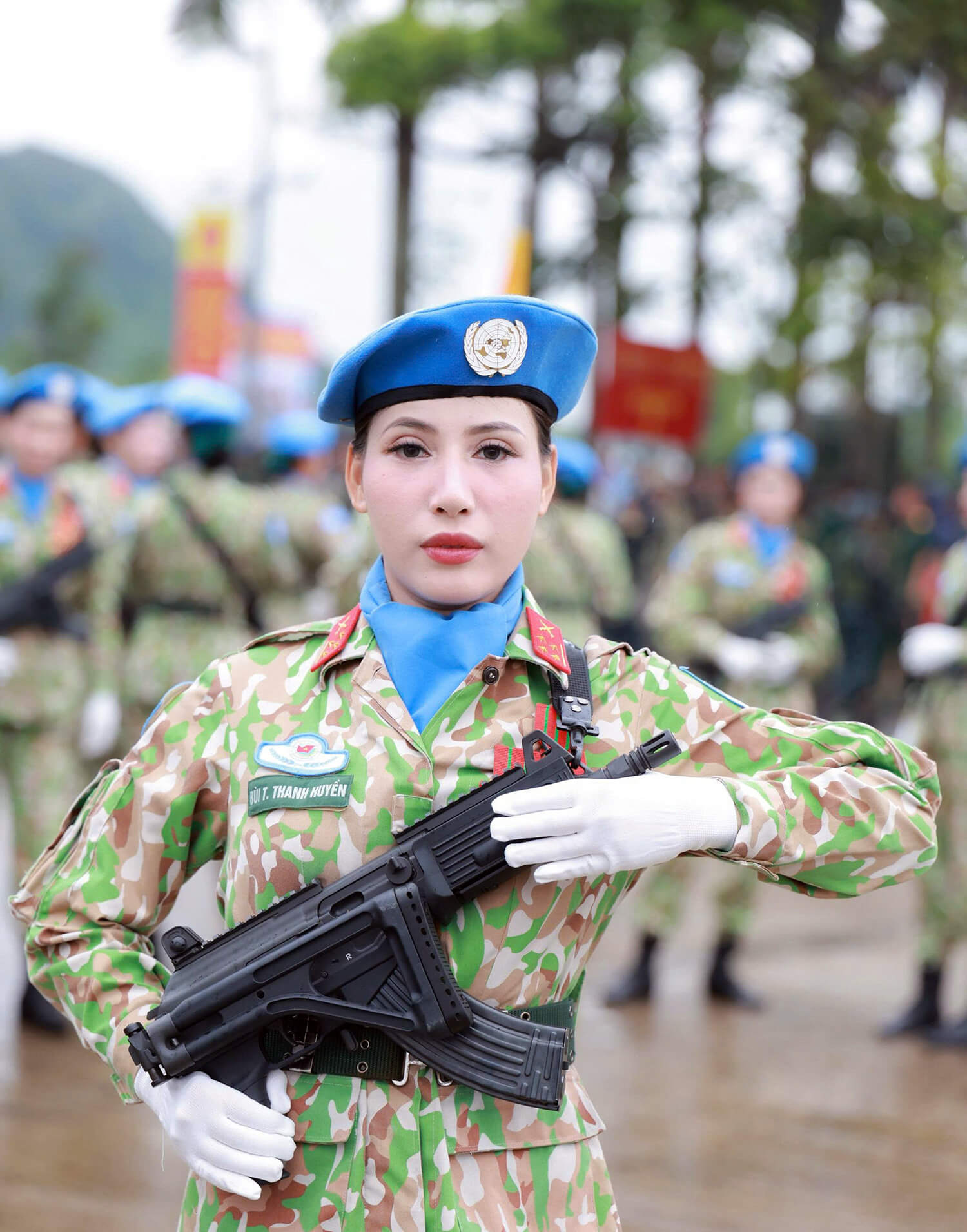 Thiếu tá QNCN Trần Thị Thu Thảo (Cục Chính trị CSB) chững chạc trong đội hình khối nữ Gìn giữ hòa bình Việt Nam. Lần đầu tham gia sự kiện trọng đại, chị không giấu được niềm xúc động. Bao vất vả từ tập luyện, hợp luyện đến tổng duyệt đều trở thành niềm tự hào, bởi đây không chỉ là trách nhiệm mà còn là vinh dự hiếm có trong cuộc đời quân ngũ. Chồng chị cũng là quân nhân, thường xuyên công tác xa nhà, con trai 10 tuổi lần đầu xa mẹ nhiều tháng. Để toàn tâm thực hiện nhiệm vụ, chị gửi con cho người thân chăm sóc. Mỗi cuộc gọi về, con trai đều khoe đã tự làm được nhiều việc và động viên mẹ yên tâm. Đó là động lực để chị Thảo thêm vững vàng, dồn hết sức cho nhiệm vụ.