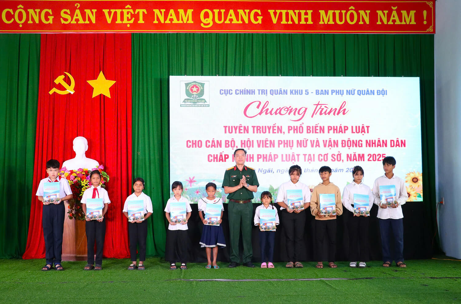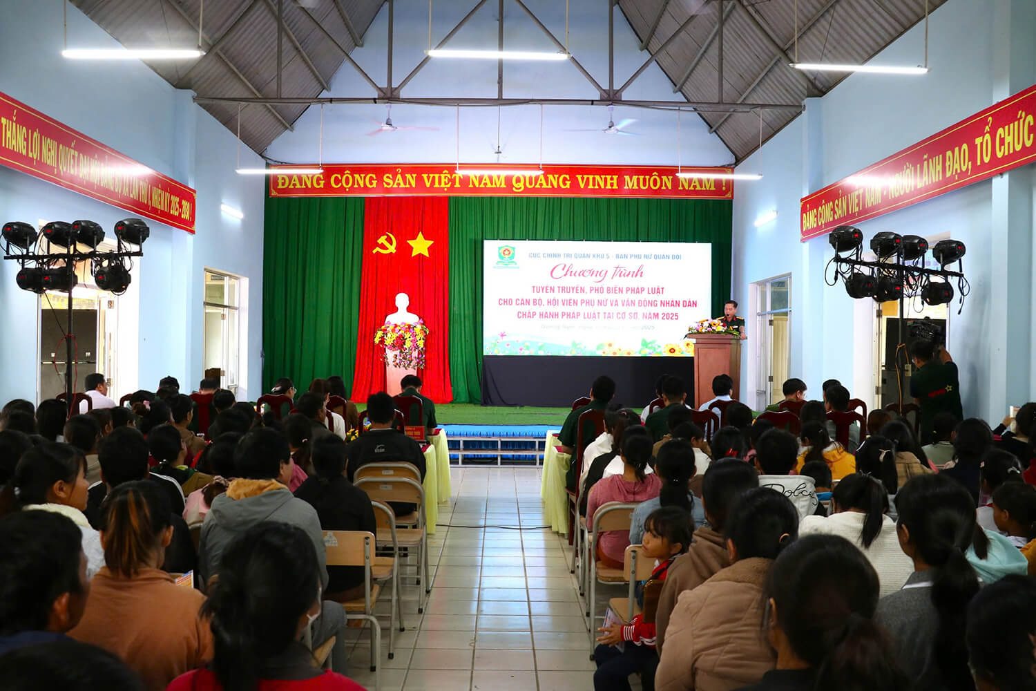 Chào mừng kỷ niệm 80 năm ngày Quốc khánh nước CHXHCN Việt Nam 2-9, sáng 28-8 tại xã Đăk Kôi (tỉnh Quảng Ngãi), Cục Chính trị Quân khu 5 phối hợp Ban Phụ nữ Quân đội tổ chức Chương trình tuyên truyền, phổ biến pháp luật cho cán bộ, hội viên phụ nữ và vận động Nhân dân chấp hành pháp luật tại cơ sở năm 2025. Chương trình nhằm nâng cao nhận thức pháp luật, xây dựng ý thức tự giác chấp hành pháp luật trong cộng đồng. Đồng thời phát huy vai trò của cán bộ, hội viên phụ nữ Quân đội trong tuyên truyền, vận động Nhân dân thực hiện tốt các quy định tại cơ sở, góp phần giữ vững an ninh, xây dựng gia đình hạnh phúc, xã hội văn minh.