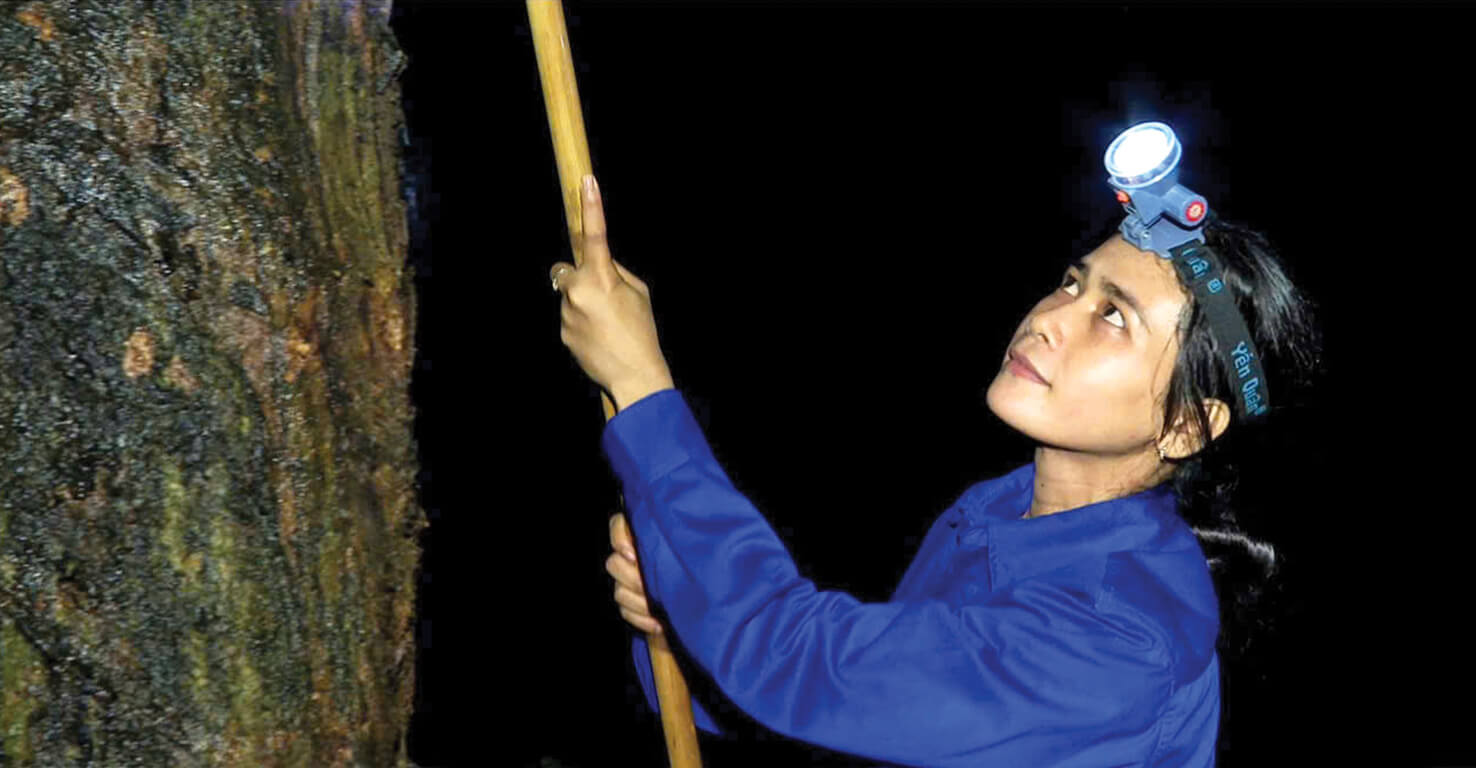 Lao động ca đêm trên vườn cao su