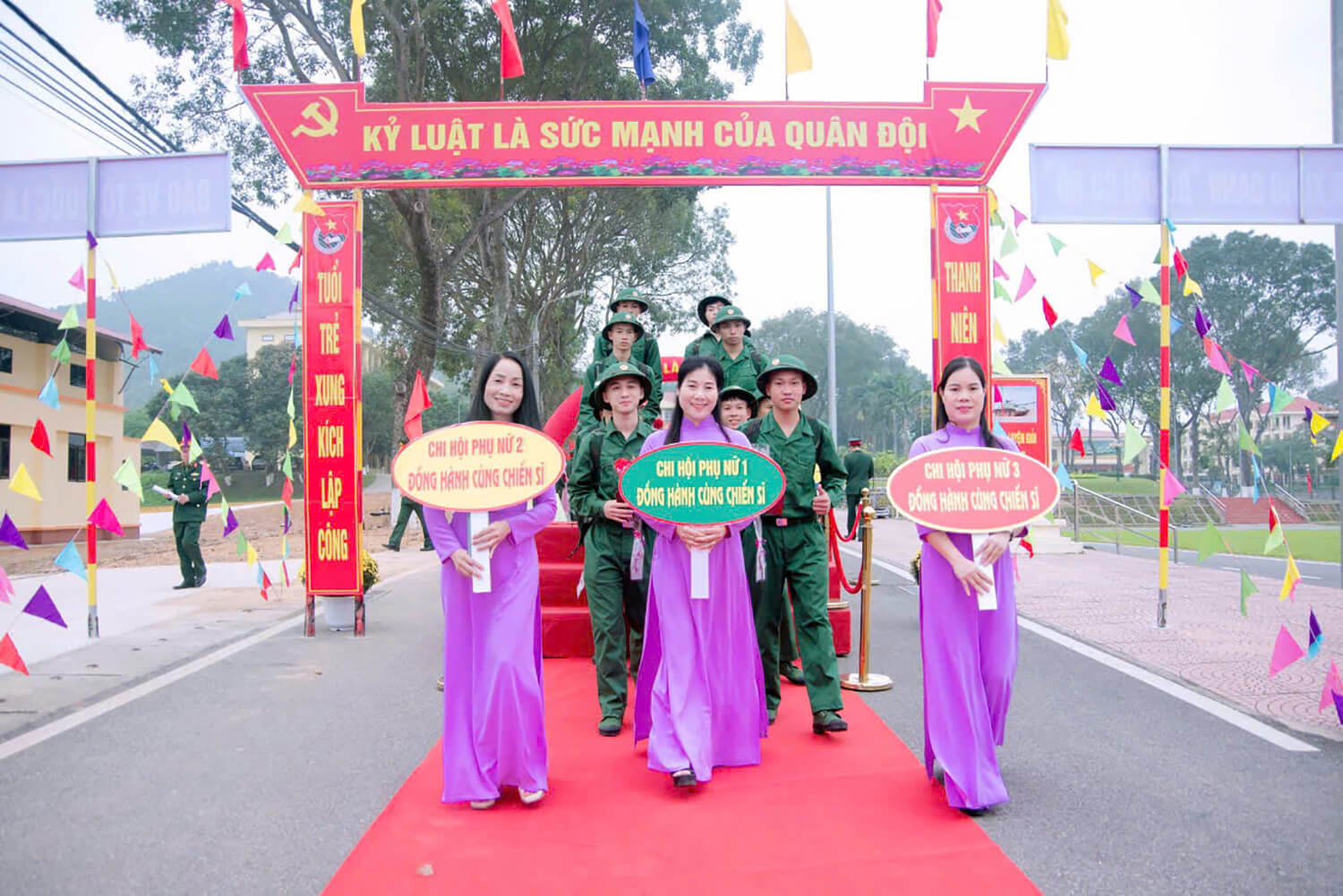 Phụ nữ Trường Trung cấp Kỹ thuật Tăng thiết giáp đồng hành cùng chiến sĩ mới trong tà áo dài truyền thống