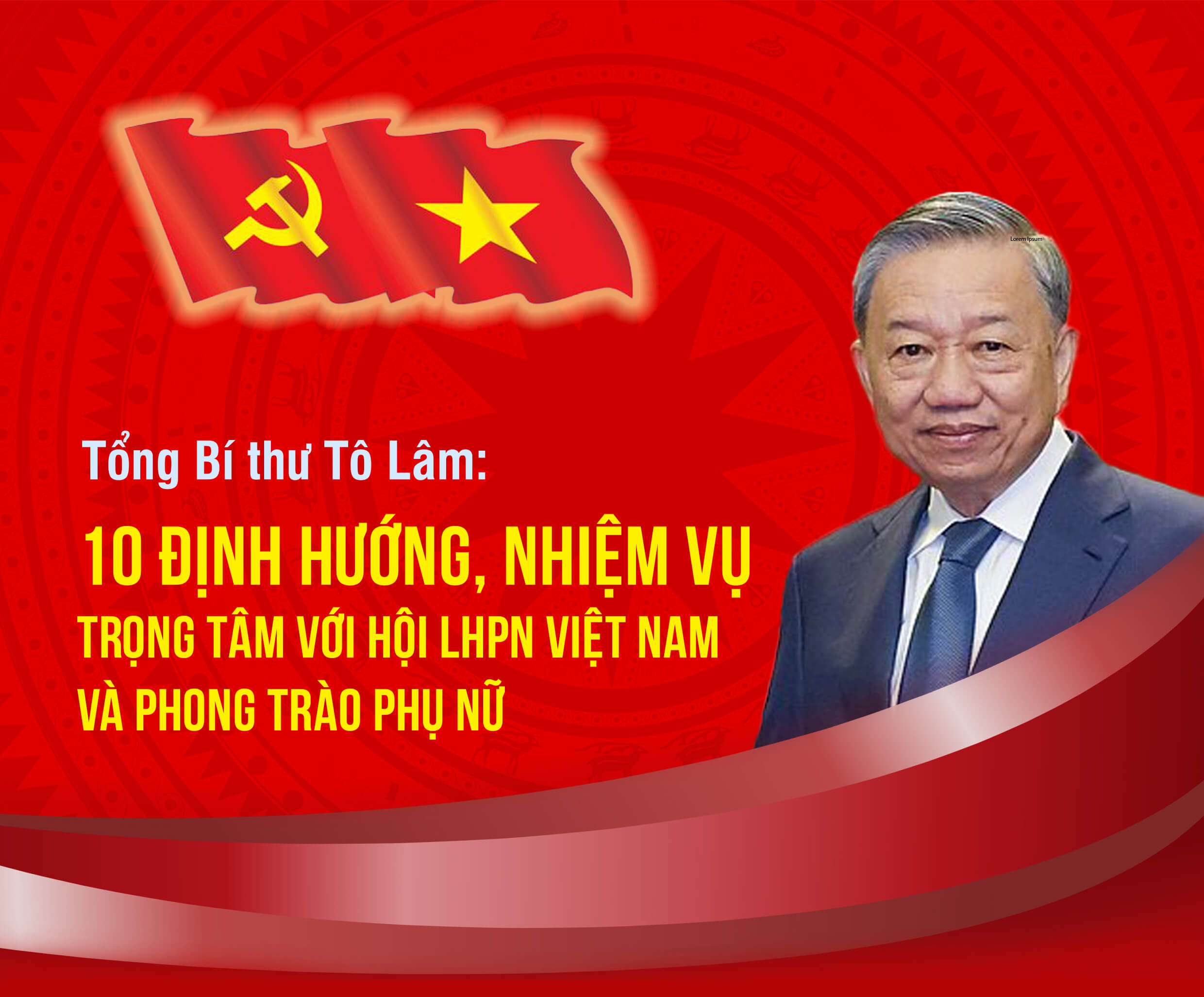 Phát biểu tại Lễ kỷ niệm 95 năm thành lập Hội Liên hiệp Phụ nữ Việt Nam, Tổng Bí thư Tô Lâm nhấn mạnh 10 định hướng, nhiệm vụ trọng tâm, coi đây là những “đột phá chiến lược” nhằm phát huy vai trò, khơi dậy tiềm năng, sức sáng tạo của phụ nữ; tạo nền tảng để phong trào phụ nữ Việt Nam phát triển vững chắc giai đoạn 2025–2035, hướng tới tầm nhìn 2045.