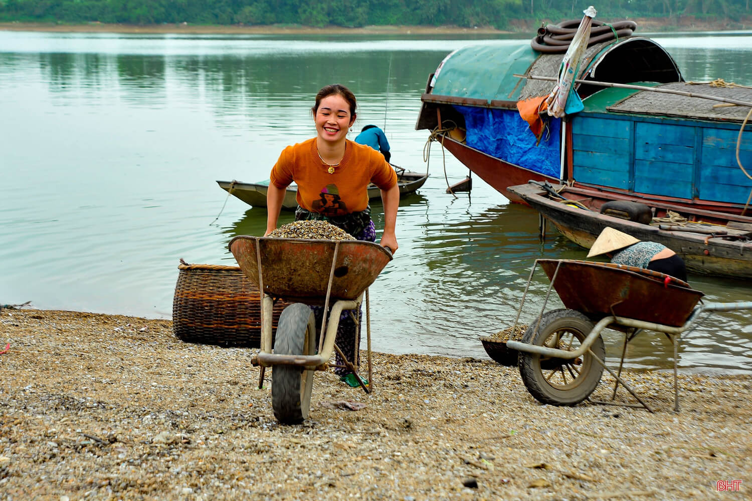 Hến sinh sôi dưới lòng sông nhiều nhất vào thời gian khoảng tiết thanh minh đến. Chúng phát triển rất nhanh. Mới ngày nào trông chúng giống như những viên sỏi trắng pha hồng hồng mà giờ đây, nó đã to bằng một đốt ngón tay út, có những con còn to bằng đốt ngón tay cái nữa kia. Không biết hến ăn gì dưới đáy sông ấy mà nhiều thế. Và chỉ có người làm nghề sông nước mới biết được chỗ nào thì hến tụ lại. Họ dùng cái cào thủ công làm bằng hai thanh gỗ kết những nan tre đan chéo hình thoi, có răng thưa để chải trên cát, khoảng cách giữa các nan tre vừa phải để khi thao tác thì cát lọt đi còn hến ở lại. Họ ngâm mình hàng giờ dưới nước cào hến rồi mang lên chợ bán lấy tiền.