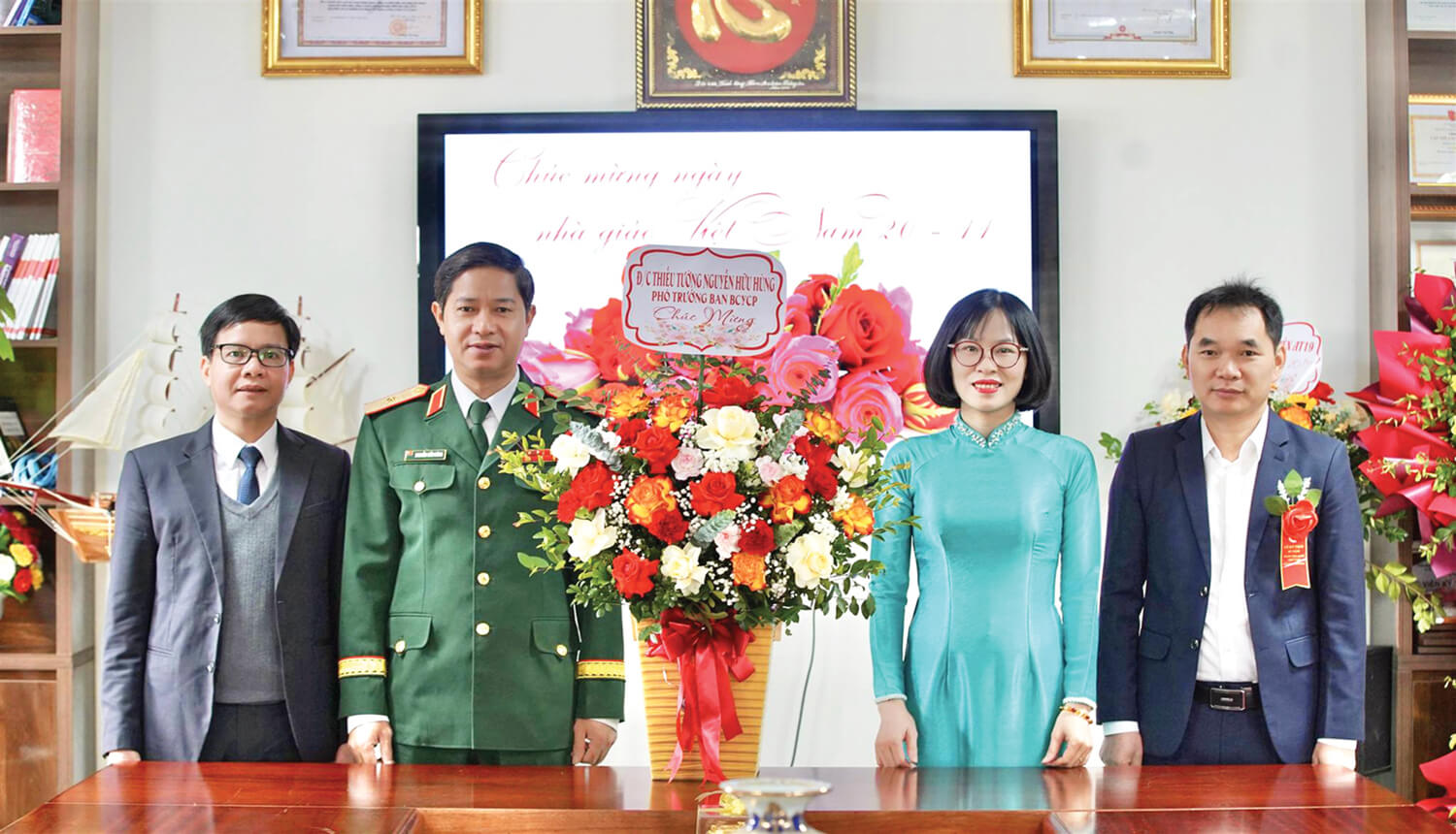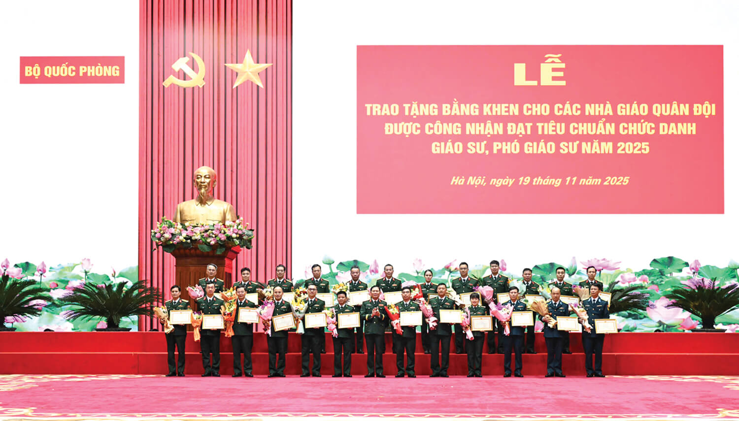 Chiều 19-11-2025, tại Hà Nội, Bộ Quốc phòng long trọng tổ chức Lễ trao bằng khen cho các nhà giáo đạt chuẩn GS, PGS. Đại tướng Nguyễn Tân Cương - Ủy viên Trung ương Đảng, Ủy viên Thường vụ Quân ủy Trung ương, Tổng Tham mưu trưởng Quân đội nhân dân Việt Nam, khẳng định: “Các nhà giáo, nhà khoa học Quân đội là những tấm gương sáng về giảng dạy và nghiên cứu, vừa hồng vừa chuyên, là hình mẫu để đồng nghiệp và cán bộ, chiến sĩ toàn quân học tập, noi theo. Các GS, PGS là lực lượng nòng cốt quyết định chất lượng giáo dục, đào tạo và nghiên cứu khoa học toàn quân”. Những lời nhắn nhủ ấy trở thành kim chỉ nam, thúc đẩy các nữ trí thức tiếp tục phấn đấu, cống hiến và lan tỏa giá trị tri thức trong toàn quân.