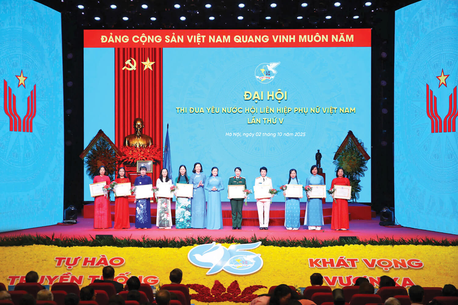 Trung ương Hội LHPN Việt Nam trao bằng khen cho 81 tập thể và 255 cá nhân có thành tích xuất sắc giai đoạn 2020-2025. Quân đội có 2 tập thể (Ban Phụ nữ Quân đội, Nhà hát Ca múa nhạc Quân đội) và 7 cá nhân được tuyên dương, gồm: Thiếu tướng, PGS, TS, TTƯT Nguyễn Hoàng Ngọc - Bí thư Đảng ủy, Phó Giám đốc Bệnh viện Trung ương Quân đội 108. Thượng tá Lê Thị Hằng - Giám đốc Trung tâm C4, Viện Hàng không Vũ trụ Viettel. Thiếu tá Nguyễn Thị Thoa - Trợ lý Phòng Phóng xạ, Viện Hóa học môi trường quân sự, Binh chủng Hóa học. Thiếu tá Vũ Nhật Hương - Trợ lý Phòng Hợp tác Quốc tế, Cục Gìn giữ hòa bình Việt Nam. Thiếu tá QNCN Nguyễn Thị Tuyết Hương - Chủ nhiệm Nhà Văn hóa, Phòng Chính trị, Bộ đội Biên phòng tỉnh Lâm Đồng. Chị Nguyễn Trần Ngọc Linh - Giám đốc Trung tâm Phân tích dữ liệu, Tổng Công ty Viễn thông Viettel. Chị Rơ Mah H’Liên - Thợ khai thác mủ cao su, Công ty 72, Binh đoàn 15.