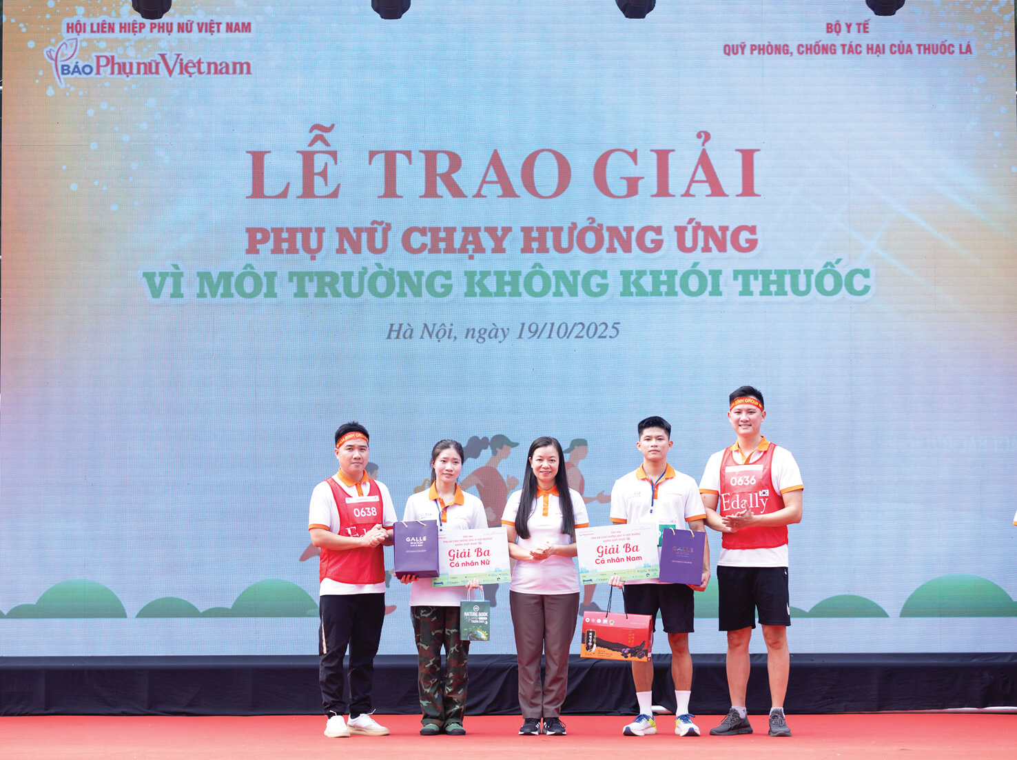 Sáng 19-10, trong không khí sôi nổi chào mừng 95 năm Ngày thành lập Hội Liên hiệp Phụ nữ Việt Nam (1930-2025) và 15 năm Ngày Phụ nữ Việt Nam (20-10-2010 – 20-10-2025), hơn 1.000 vận động viên đã cùng hào hứng tham gia Giải chạy “Phụ nữ chạy hưởng ứng Vì môi trường không khói thuốc” tại Công viên Thống Nhất (Hà Nội). Chương trình do Trung ương Hội Liên hiệp Phụ nữ Việt Nam chỉ đạo, Báo Phụ nữ Việt Nam phối hợp với Quỹ Phòng, chống tác hại của thuốc lá (Bộ Y tế) tổ chức, nhằm lan tỏa thông điệp “Vì sức khỏe phụ nữ, trẻ em - vì cộng đồng không khói thuốc”.